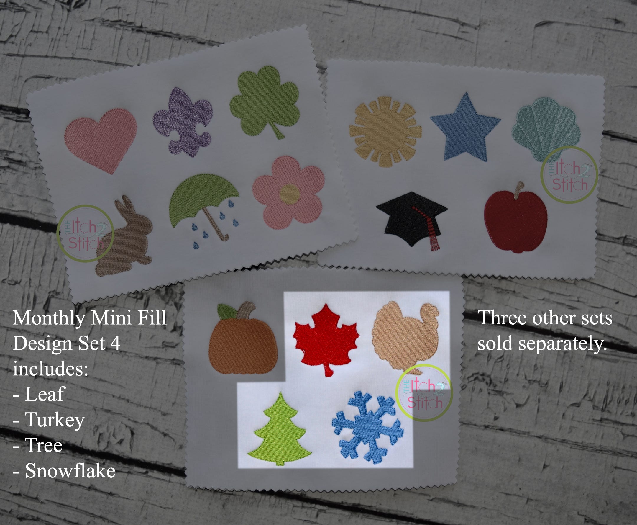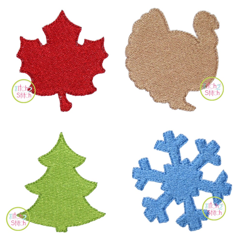 This set includes 4 different designs: Mini Leaf Fill, Mini Turkey Fill, Mini Tree Fill and Mini Snowflake Fill.
