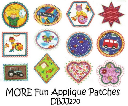 Here are 12 more simple but fun applique patches for a variety of uses! Use to embellish clothing, blankets, towels, coats, quilts. Sew on backing such as Timtex to make hanging ornaments.Ā Use to frame photos for memory quilts! Use the hexagon and other shapes for "I SPY" projects. Do you have a neat fabric you are not quite sure what to do with? Use on of these to frame it and applique it onto another project. I am also using them for scraps on tops to match some pants I'm making for Emily.Ā The possibilities only end where your imagination does.Ā Have fun!
