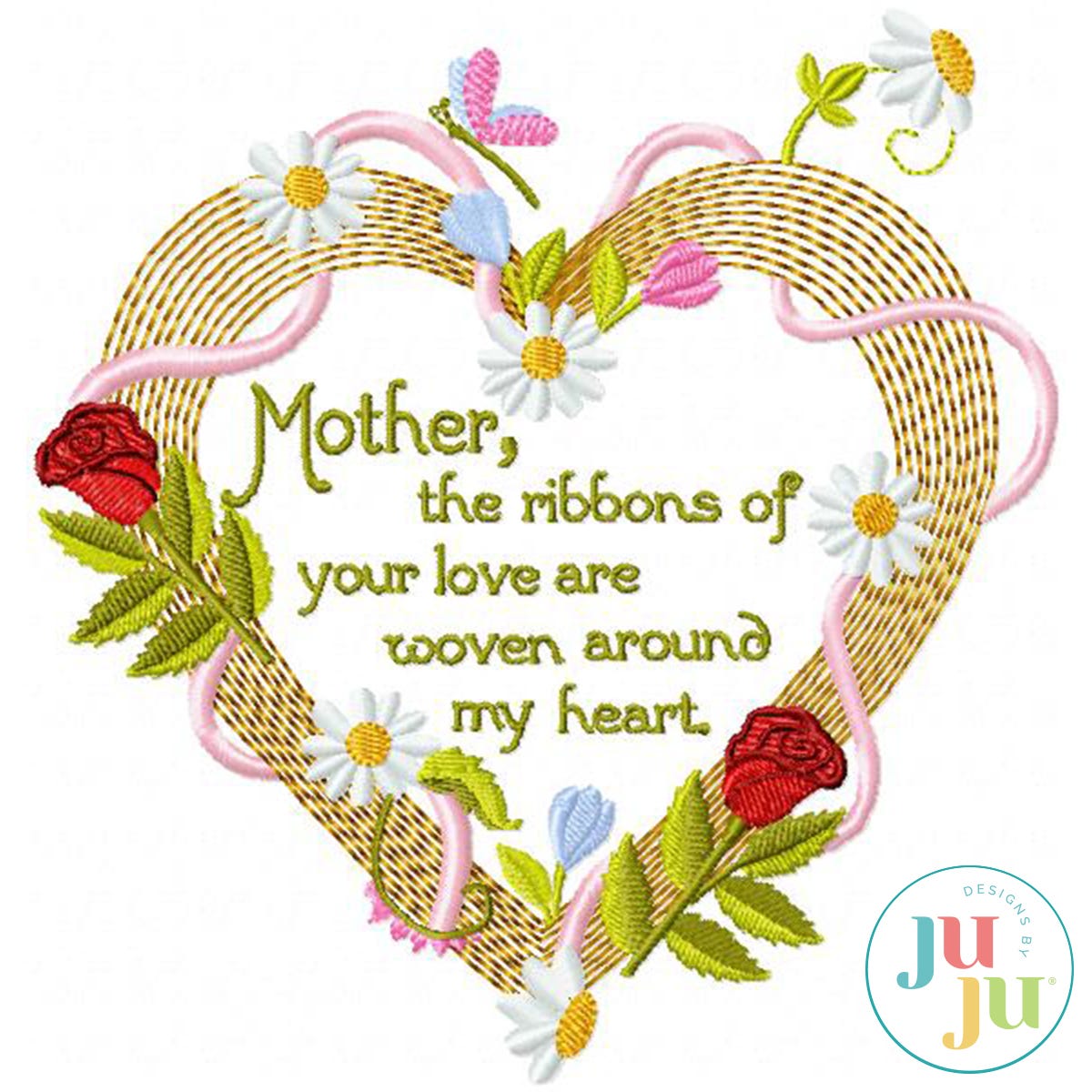 This beautiful design is perfect for Mothers Day or anytime you want to let Mom know how much she means to you. Stitch it on a pillow or tote for a beautiful Mothers Day gift. The design also comes without the wording so you can drop whatever wording you would like inside of the heart wreath. Wouldnt it be beautiful with a 3D butterfly placed inside of the wreath. Please make sure the design fits your hoop.