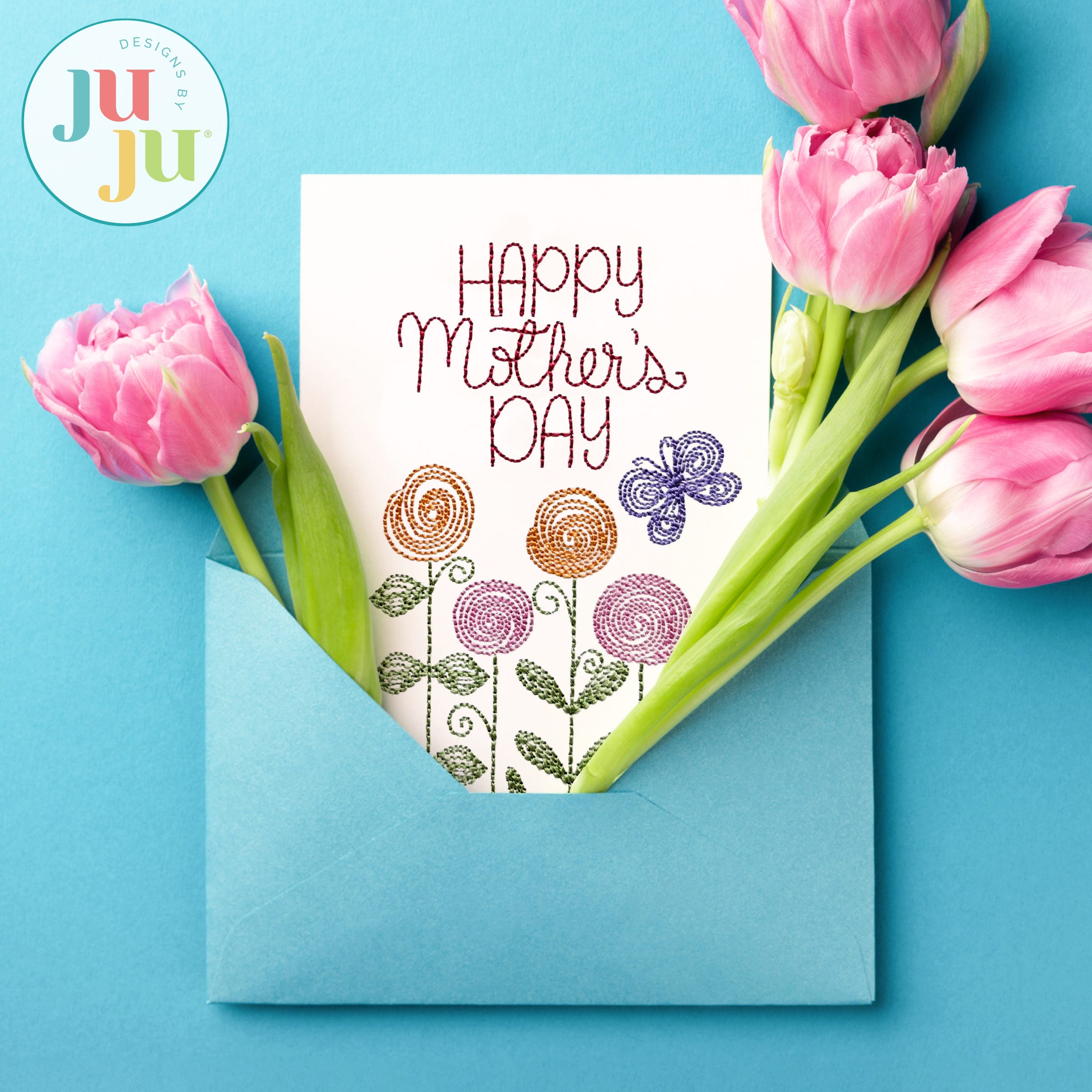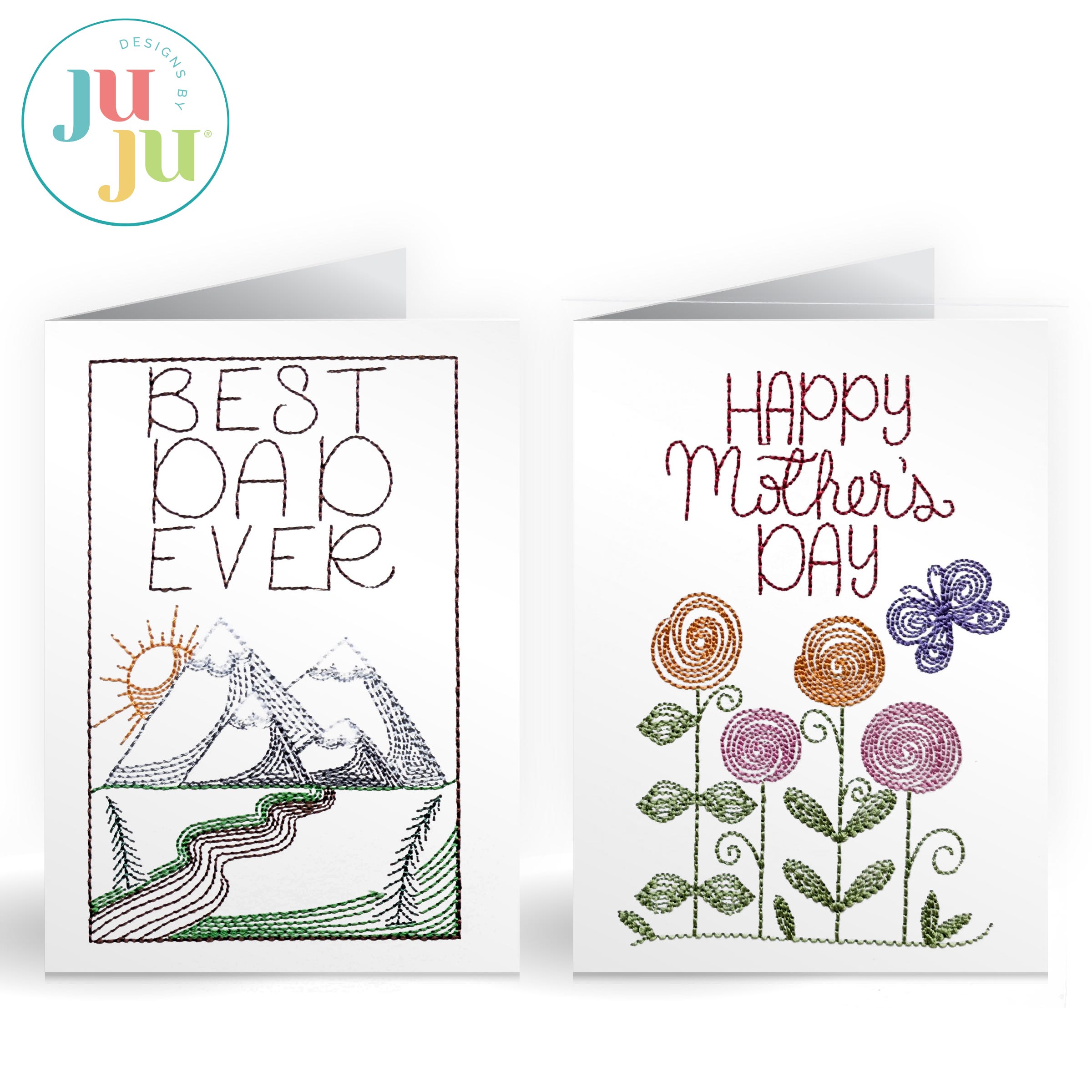 Stitch up some lovely wishes for Mom and Dad with these two Greeting Card designs! Perefect for Mother's Day and Father's Day! Two designs in 2 sizes each are included: 4x6 and 5x7