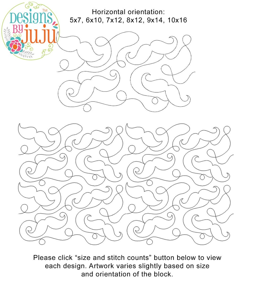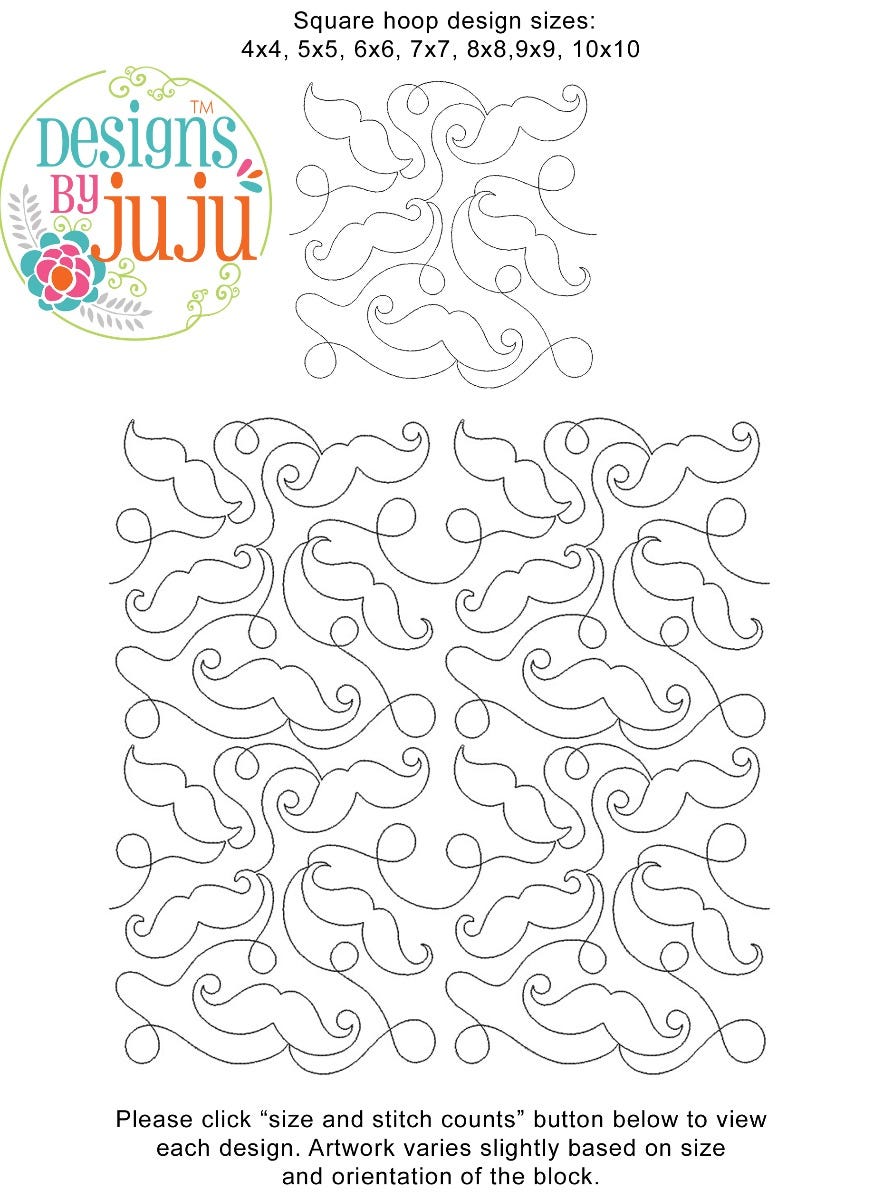 Please note: Both the scale of each pattern and arrangement of the motifs may vary based on the hoop size. Please click the "Size and Stitch Count" button to view the artwork for each size.