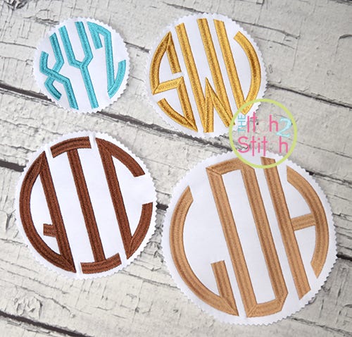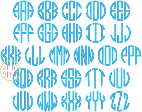 You will receive all left/middle/right A-Z letters and a letter-placing template (79 files) in five sizes.Ā The 3.5" size fits in a 4x4 hoop but all other sizes require a larger hoop. This style of lettering features a split satin stitch for all sizes.