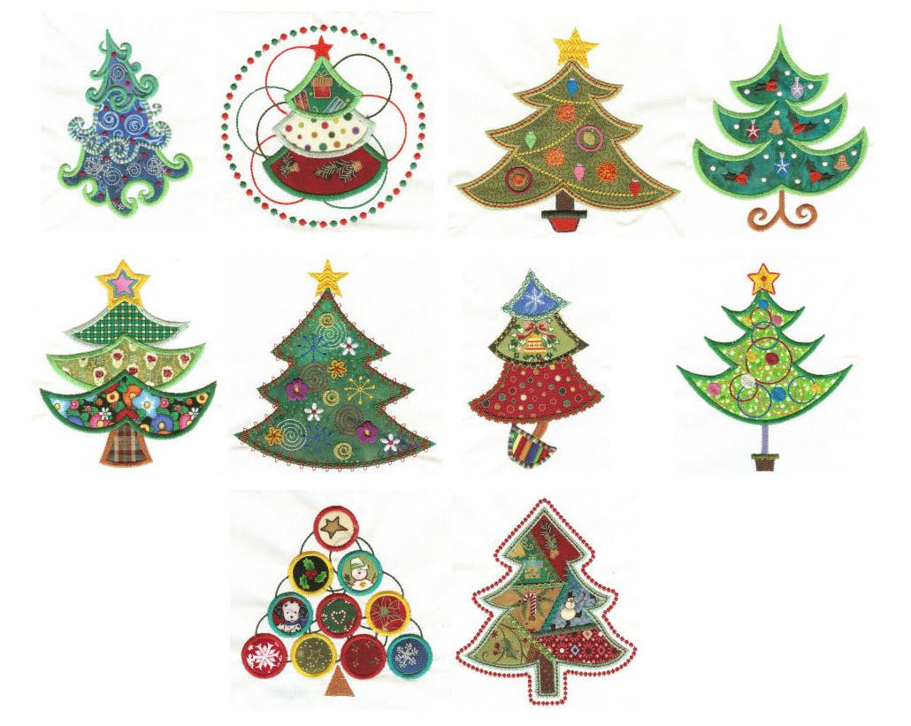 10 fun and funky applique Christmas trees that will add pizzazz to your Christmas projects!