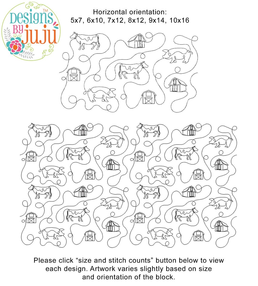 Each one of our End-to-End Quilting™ embroidery designs is an originally created design available in a large variety of block sizes. Every block is one continuous single-run line running edge to edge beginning on the left and exiting on the right. There is NO backtracking or double stitching. Each size block has been engineered and manually digitized by our team for EXACT edge-to-edge quilting precision so that when they are aligned properly in your hoop, you cannot tell where one block ends and the next one begins! ADDITIONALLY, the art has been created for each size so that when the rows are stacked on top of each other, it provides a practically seamless, professional, allover quilting effect that mimics (E2E) pantographs so you can do edge-to-edge quilting on your embroidery machine!
