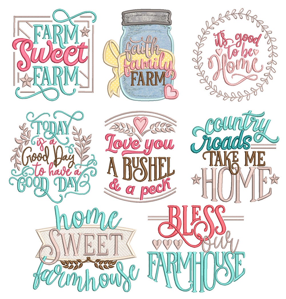 *Please note that the following designs contain applique components:Ā Faith family farm / Love you a bushel & a peck / Home sweet farmhouseĀ