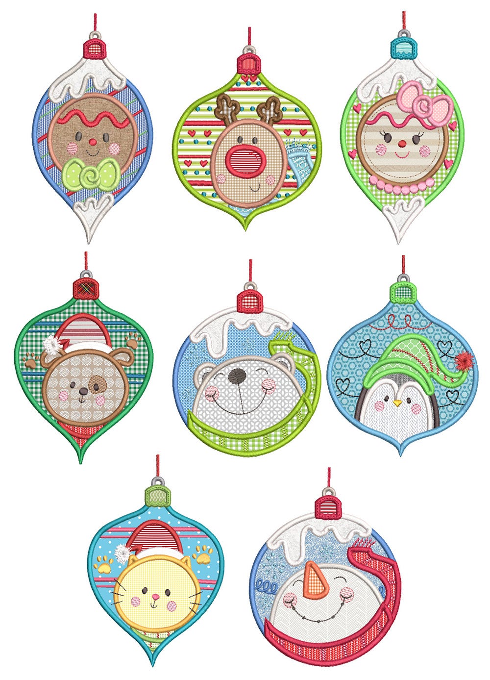 8 precious ornament designs in applique! Set includes regular applique designs AND in the hoop files for making an actual ornament to hang!