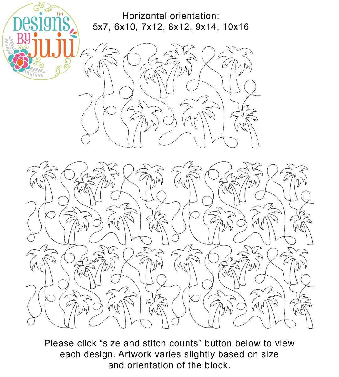 Each one of our End-to-End Quilting™ embroidery designs is an originally created design available in a large variety of block sizes. Every block is one continuous single-run line running edge to edge beginning on the left and exiting on the right. There is NO backtracking or double stitching. Each size block has been engineered and manually digitized by our team for EXACT edge-to-edge quilting precision so that when they are aligned properly in your hoop, you cannot tell where one block ends and the next one begins! ADDITIONALLY, the art has been created for each size so that when the rows are stacked on top of each other, it provides a practically seamless, professional, allover quilting effect that mimics (E2E) pantographs so you can do edge-to-edge quilting on your embroidery machine!