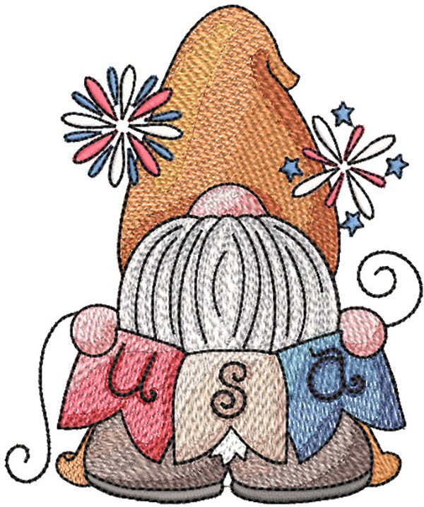 Celebrate the USA with this patriotic gnome! 4x4 and 5x7 hoop sizes included.