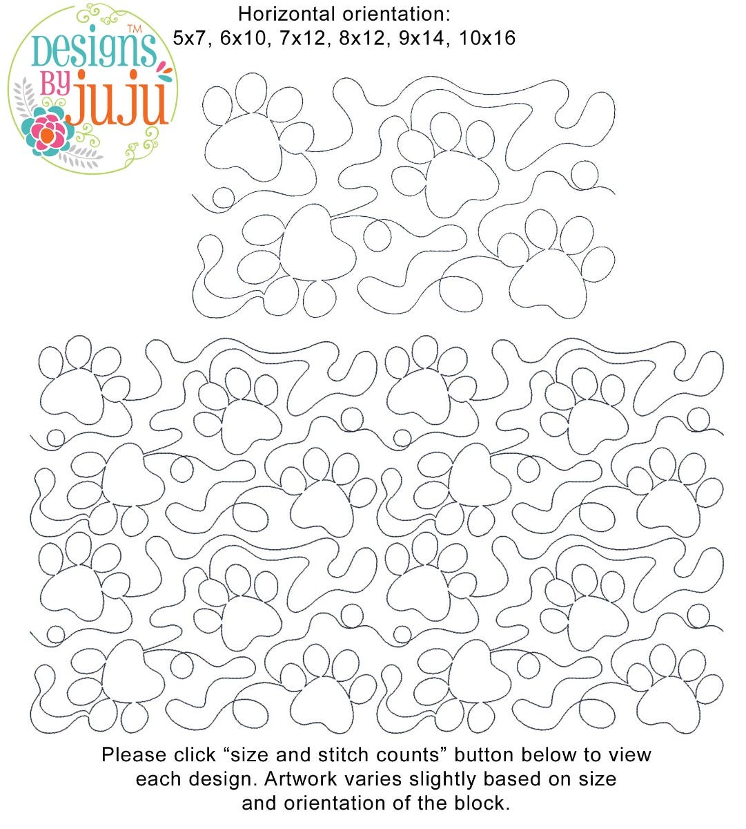 Please note: Both the scale of each pattern and arrangement of the motifs may vary based on the hoop size. Please click the "Size and Stitch Count" button to view the artwork for each size.