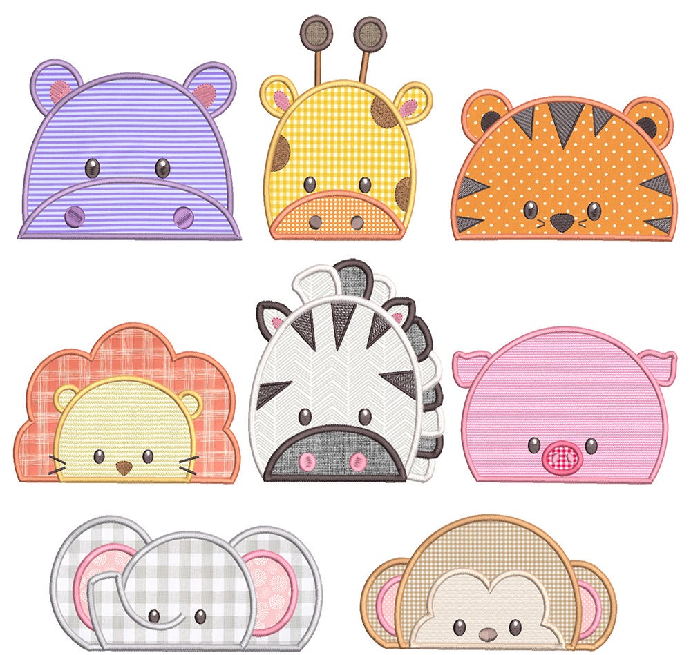 8 perfect peeker animals in applique! Great for hooded towels!
