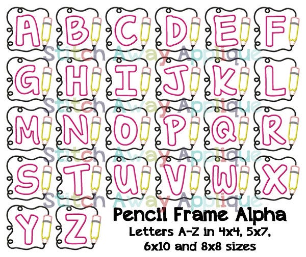 Customize Back to School projects with our Pencil Frame applique alphabet! Capital Letters A-Z included.