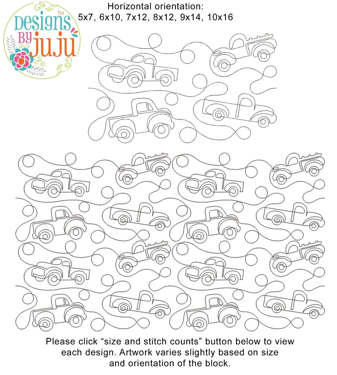 Each one of our End-to-End Quilting™ embroidery designs is an originally created design available in a large variety of block sizes. Every block is one continuous single-run line running edge to edge beginning on the left and exiting on the right. There is NO backtracking or double stitching. Each size block has been engineered and manually digitized by our team for EXACT edge-to-edge quilting precision so that when they are aligned properly in your hoop, you cannot tell where one block ends and the next one begins! ADDITIONALLY, the art has been created for each size so that when the rows are stacked on top of each other, it provides a practically seamless, professional, allover quilting effect that mimics (E2E) pantographs so you can do edge-to-edge quilting on your embroidery machine!