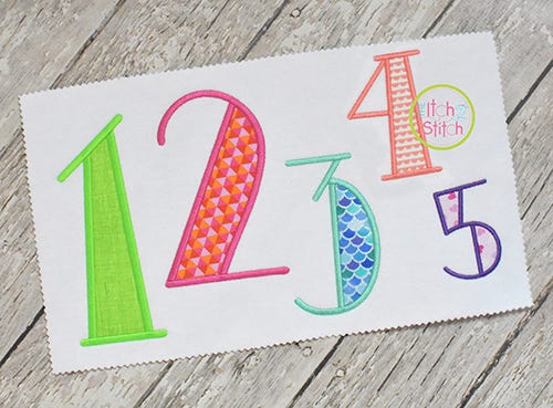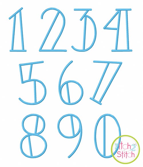 You will receive allĀ numbers 0-9 (10 files)Ā in six sizes.Ā All numbers in the 2" and 3" sizes fit in a 4x4 hoop. A larger hoop is needed for 4" size and above.Ā Shown personalized with our Cutsie Joe, Copycat, Courtside, and Truly Madly Deeply fonts, sold separately.