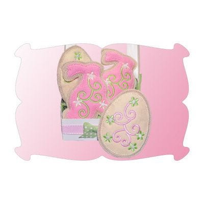 5x7: Makes 2 cookies per hooping. Actual design size: Bunny: 3.87 by 6.89 inches. SC: 8895. Egg: 3.77 by 6.85. SC: 9798.