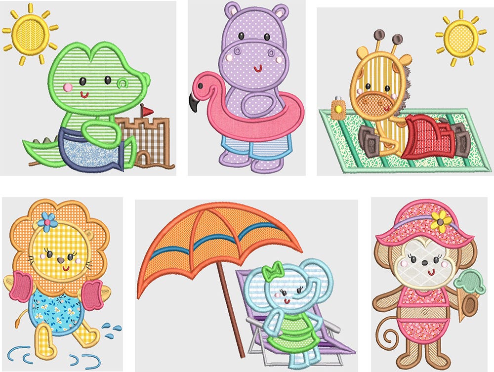 6 playful beach critters in applique!