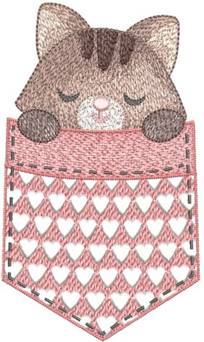 An adorable little Pocket Cat design for you! This single design features multiple color layers of lighter density fill to create a blended, variegated, textured look.