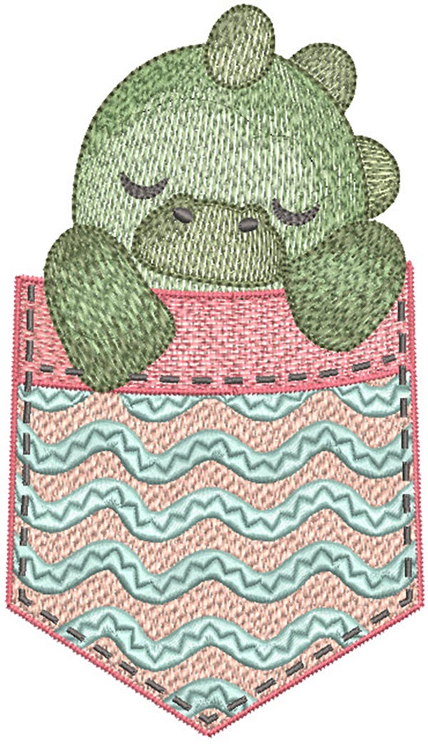 An adorable Pocket Dinosaur design featuring multiple color layers of lighter density fill to create a blended, variegated, textured look.