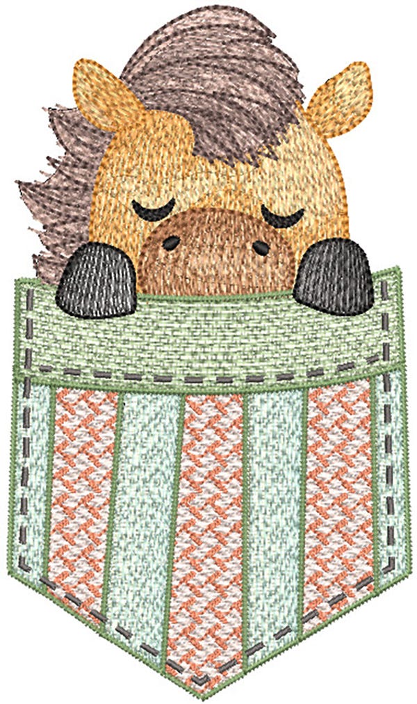 An adorable Pocket Horse design featuring multiple color layers of lighter density fill to create a blended, variegated, textured look.