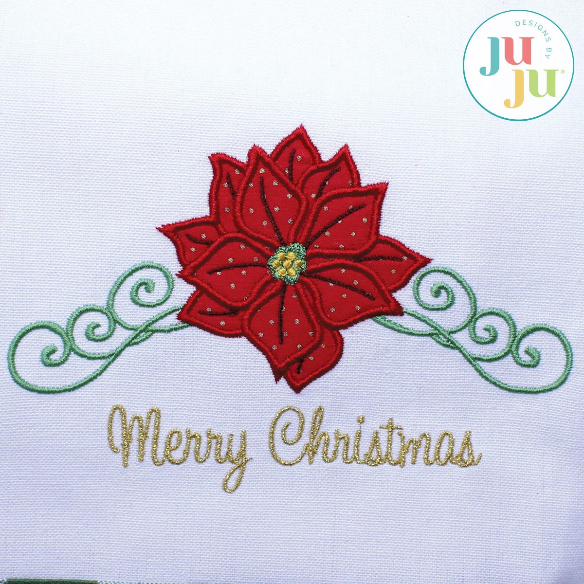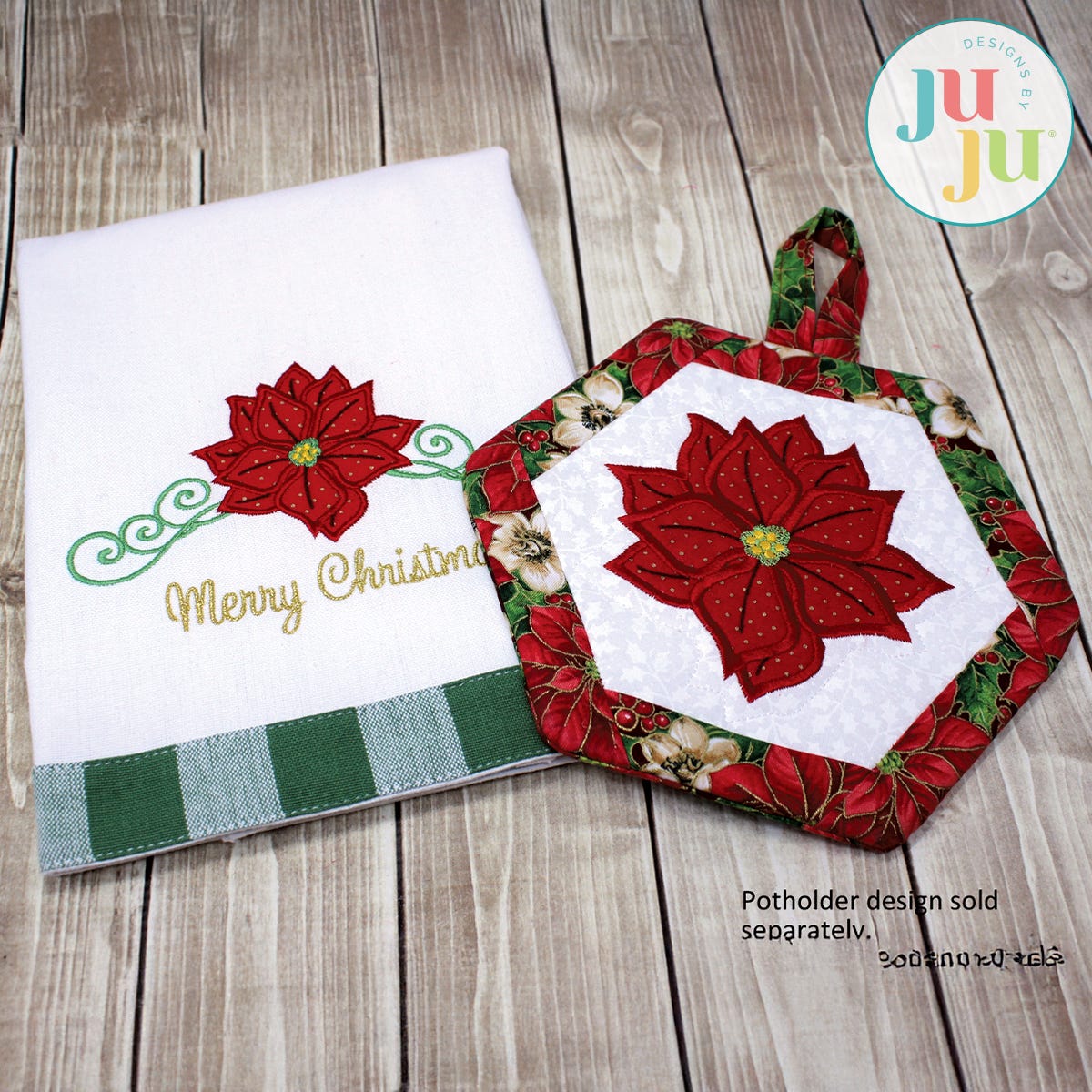 This Poinsettia applique design looks great on kitchen towels but would look equally beautiful on a pillow case.