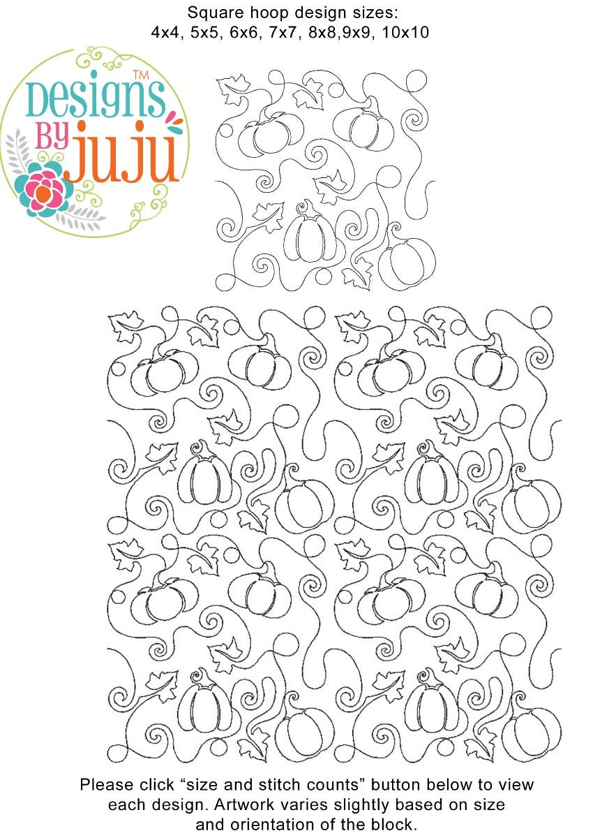 Please note: Both the scale of each pattern and arrangement of the motifs may vary based on the hoop size. Please click the "Size and Stitch Count" button to view the artwork for each size.