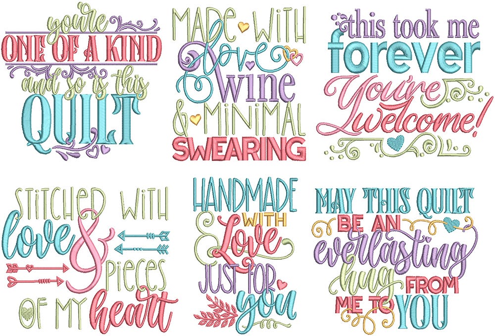 6 lovely quilt label designs, perfect for any project!