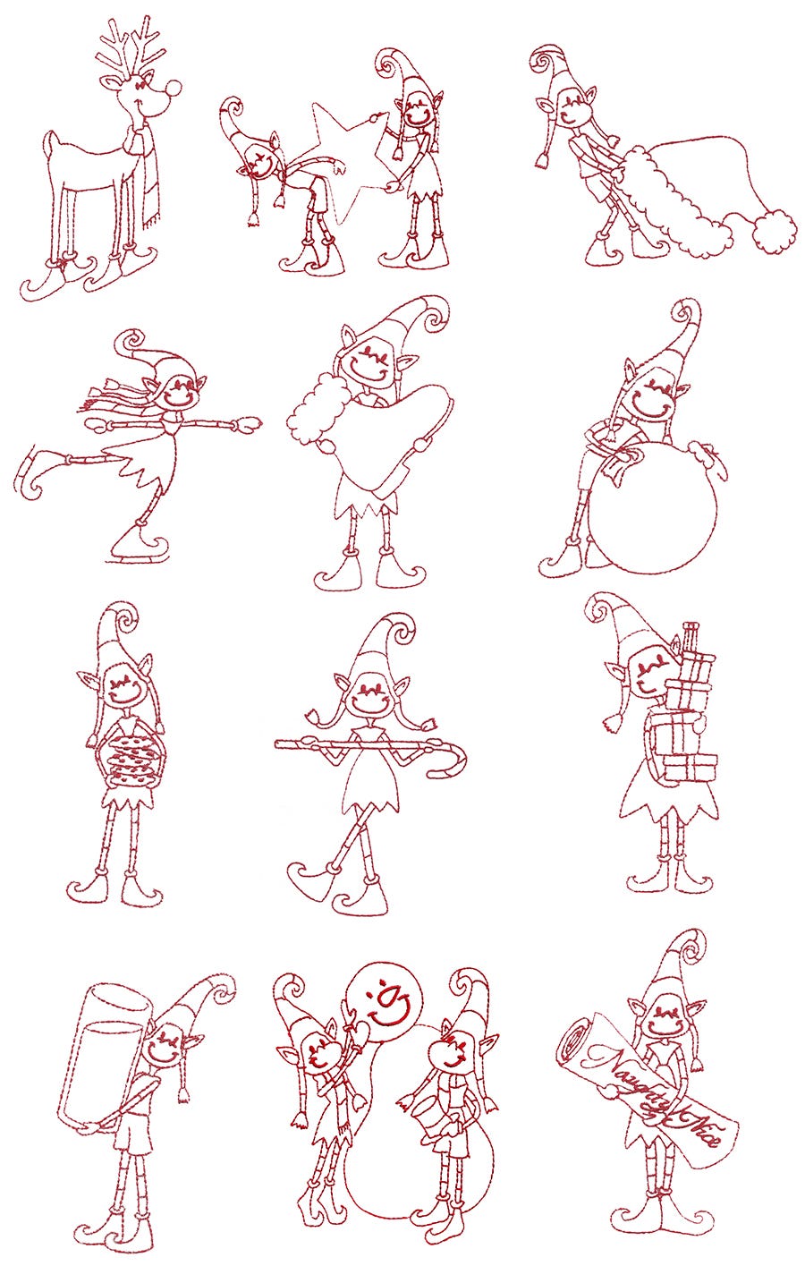 Get ready for some seriously adorable quirky Christmas elves in redwork! These are great for all ages.