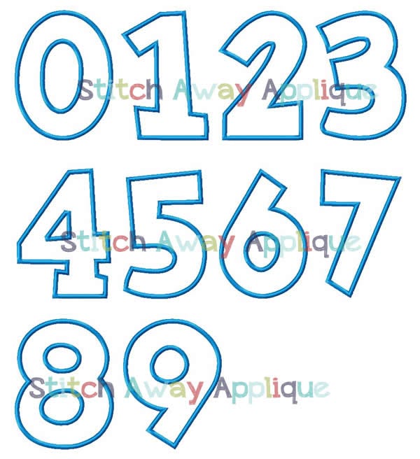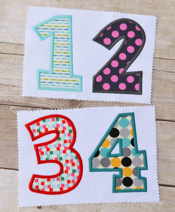 Fun applique numbers with slightly quirky shapes, perfect for birthday projects and more! Numbers 0-9 included.