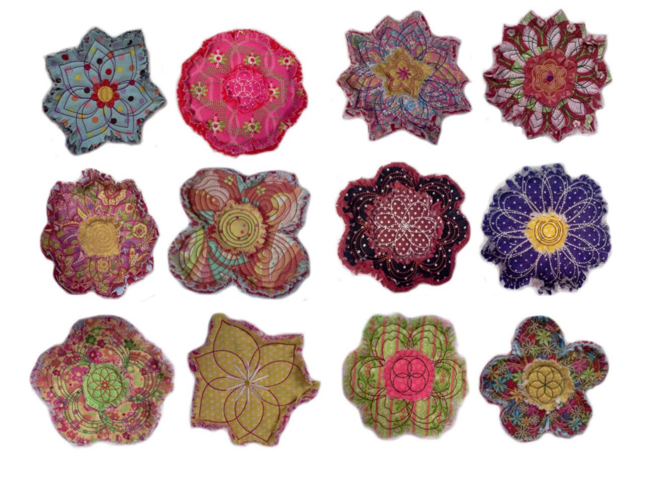 Raggedy Flowers Applique is a fun, trendy and forgiving style of applique that will give your finished design that "raggy" edge look similar to a rag quilt edge. These flowers will look great on your quilts, bags, t shirts, jackets, and more..especially on denim! Instructions are included