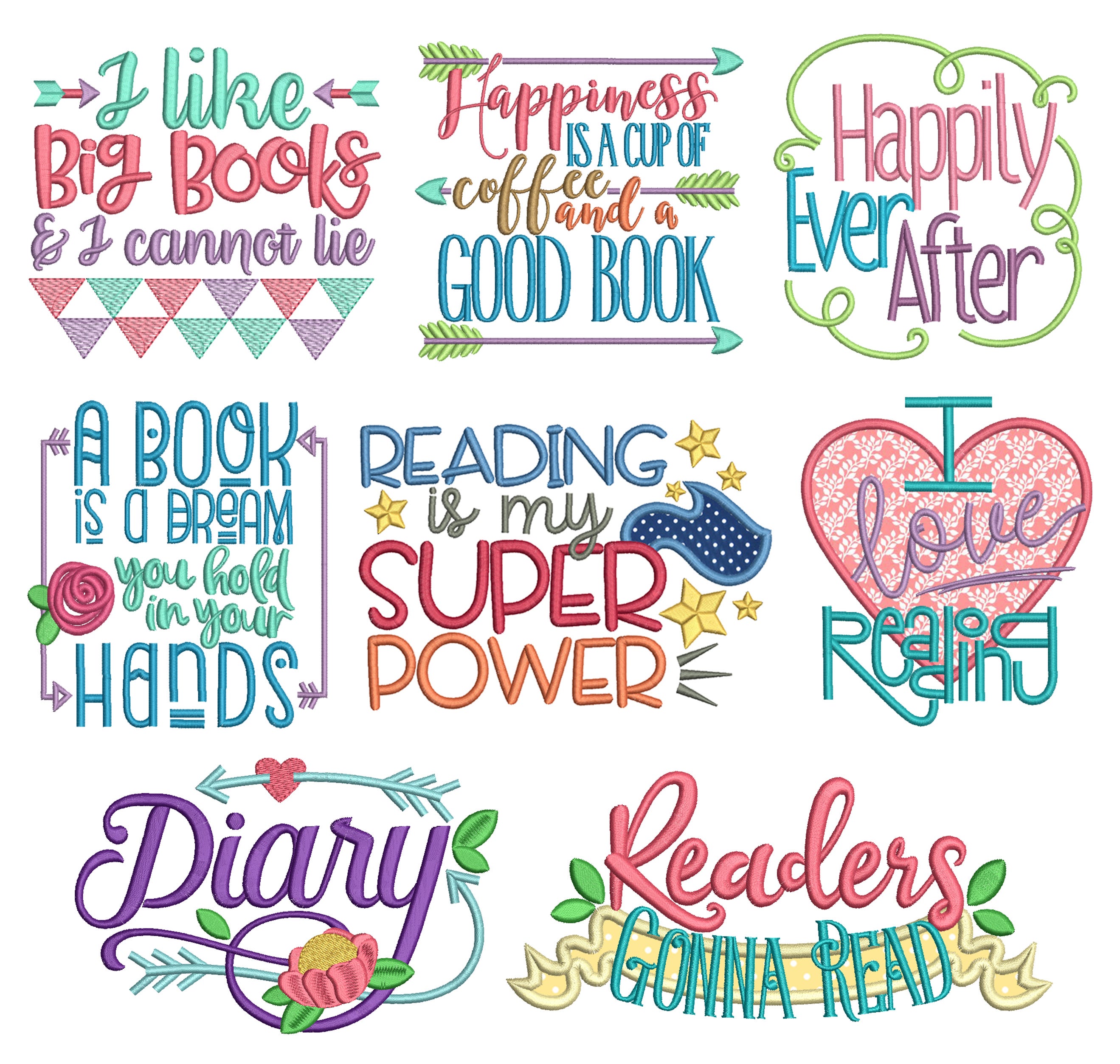 *Please note that the following designs contain applique components: I love Reading / Readers Gonna Read / Reading is my Super Power /