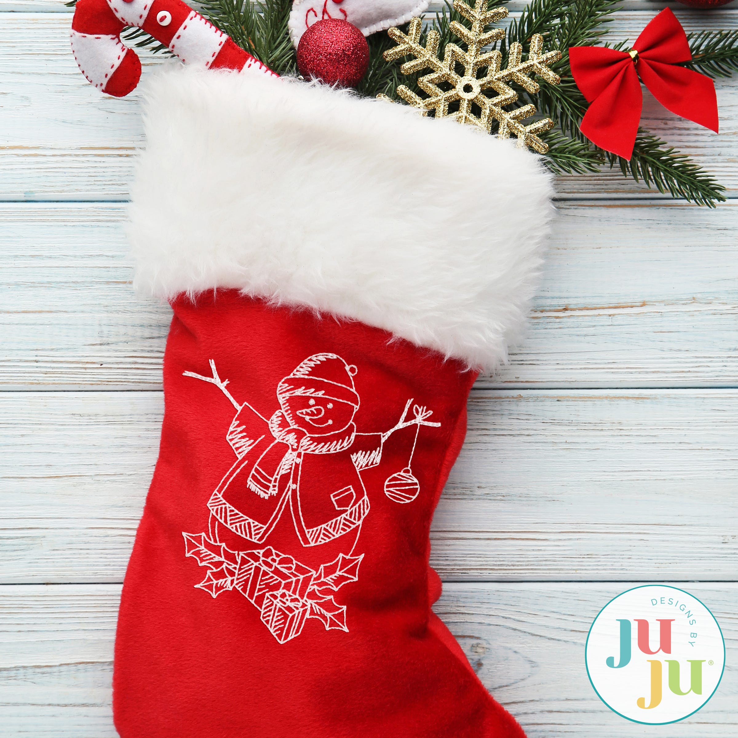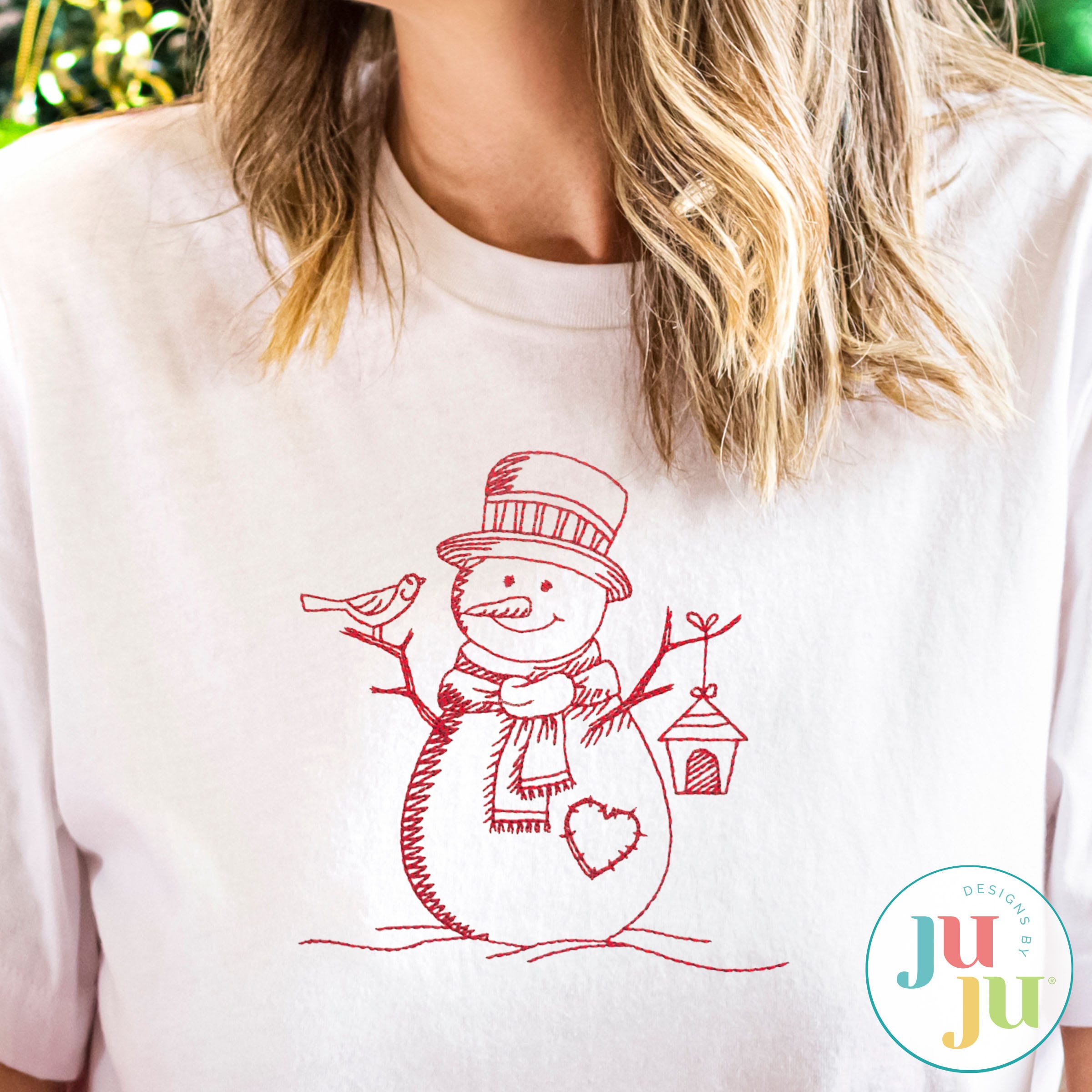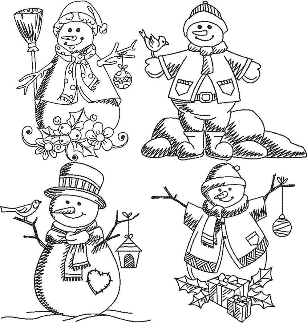 Four adorable retro redwork snowmen designs! These sweet one-color designs are embroidery-only featuring a triple bean stitch.