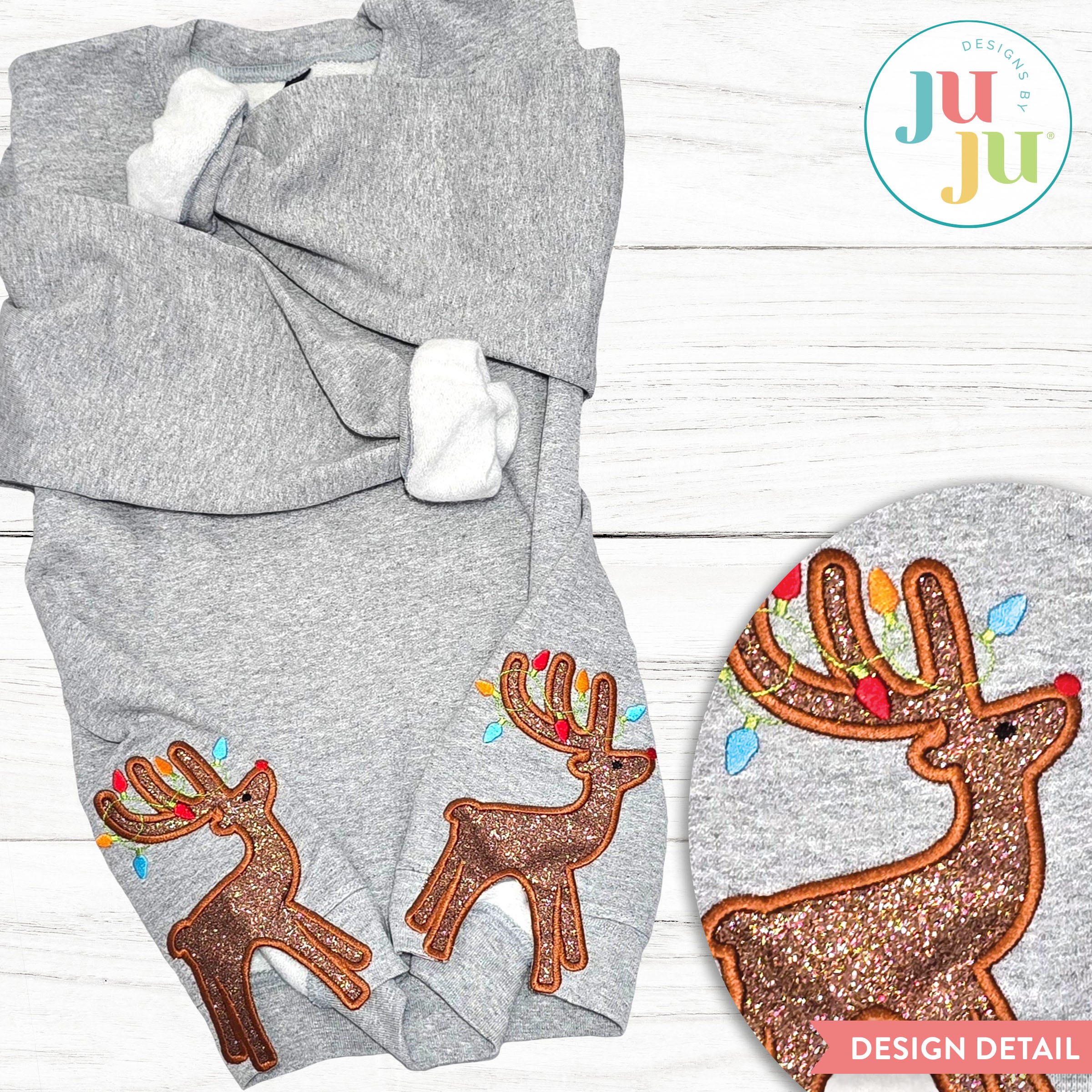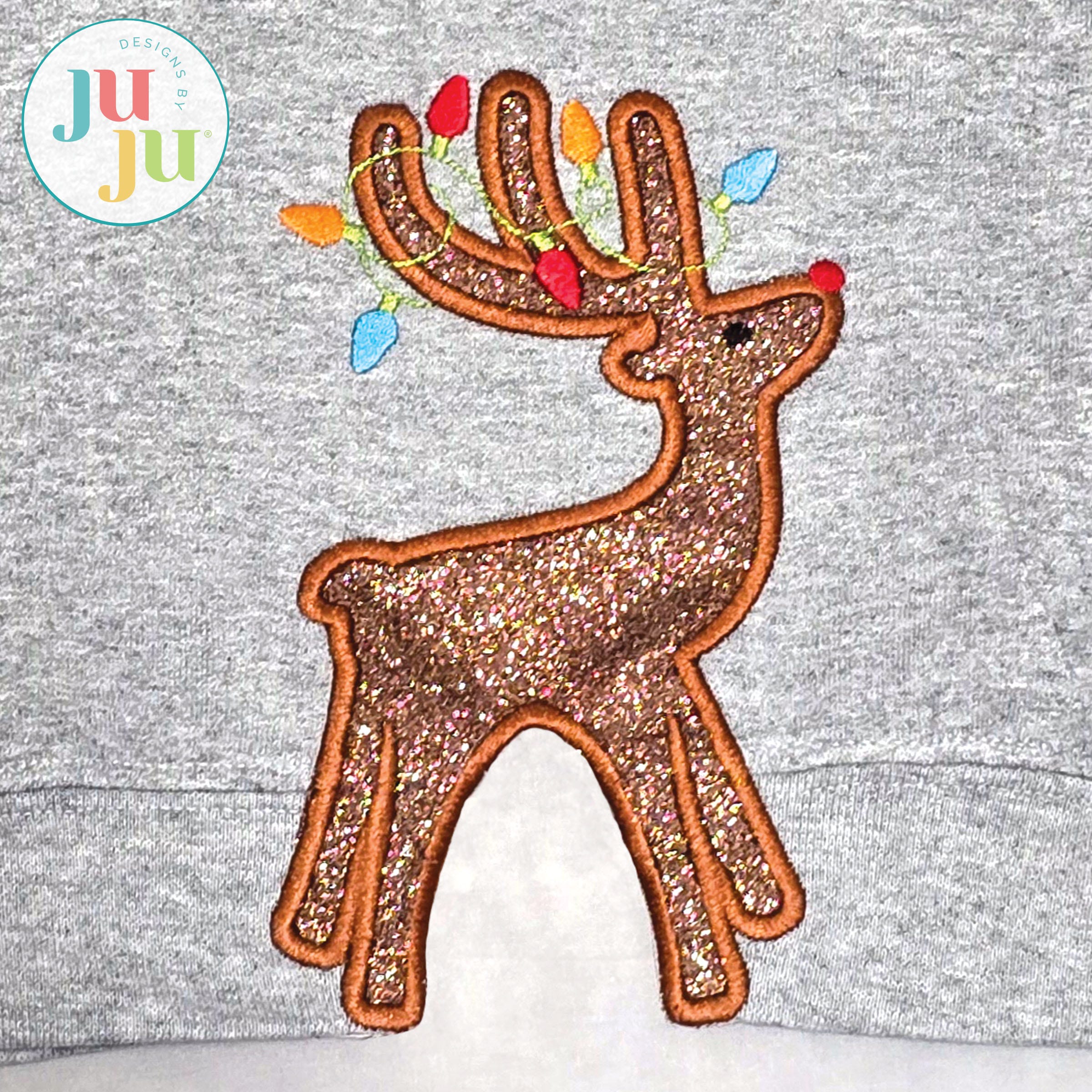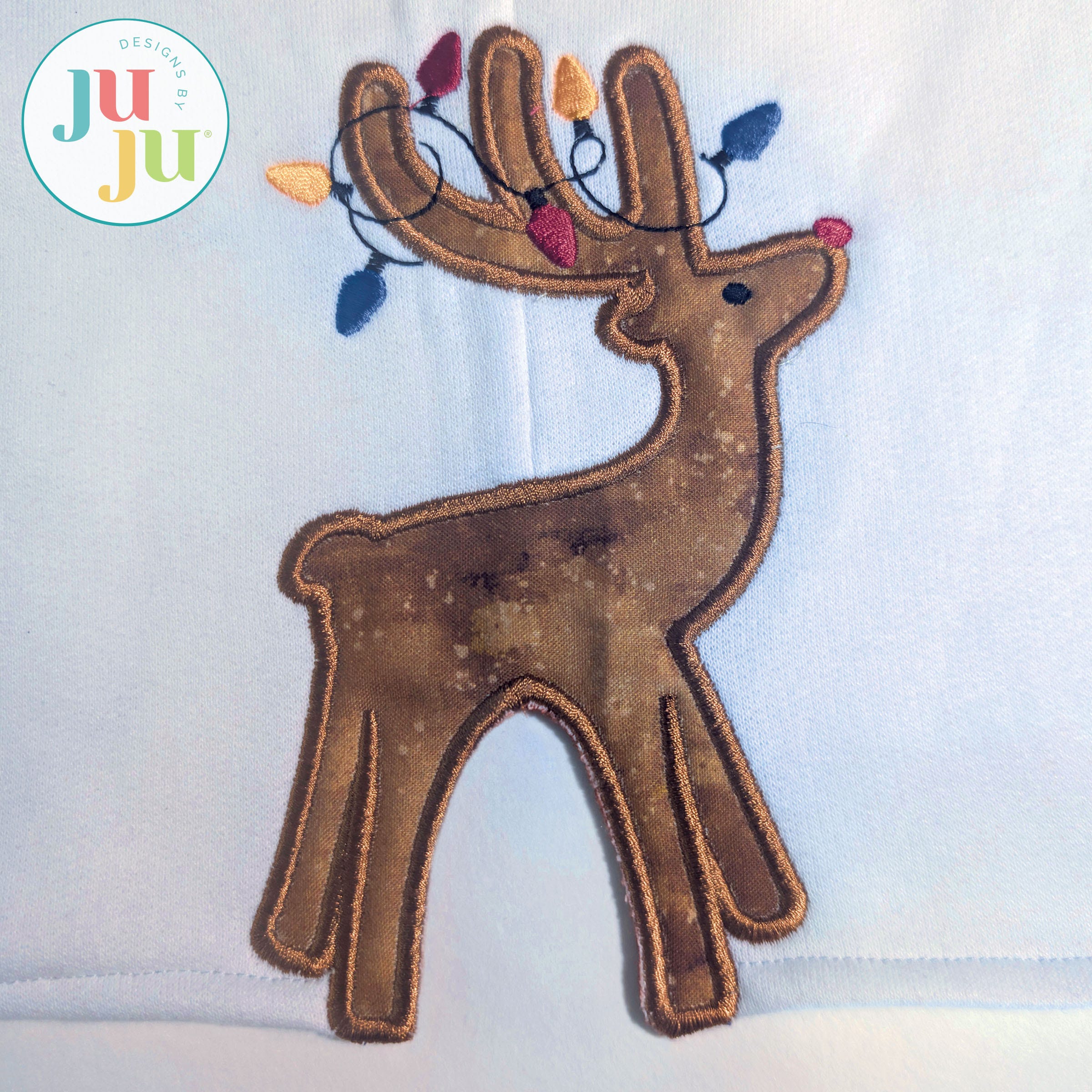 If you like the trendy side seam bow applique craze, you are going to love this Reindeer design! Perfect for Christmas tees, sweatshirts and more!