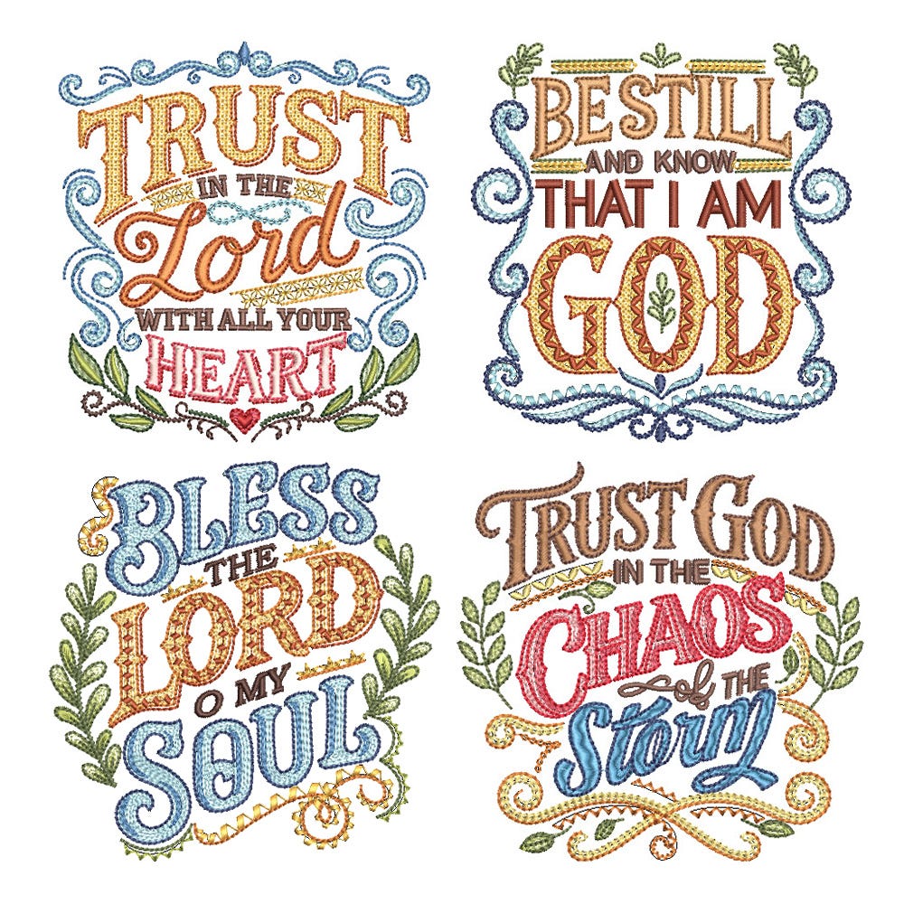 Stitch words of comfort and peace with our Religious Word Art Set 1. This embroidery-only set features four encouraging, faith-filled sayings.