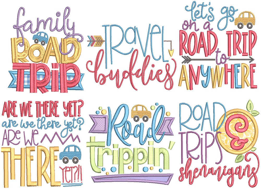 *Please note that the following designs contain applique components:Ā Family road trip / Road trippin' / Road trips & shenanigans /Ā