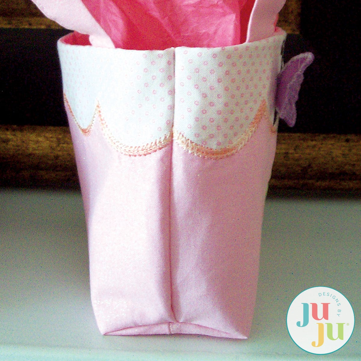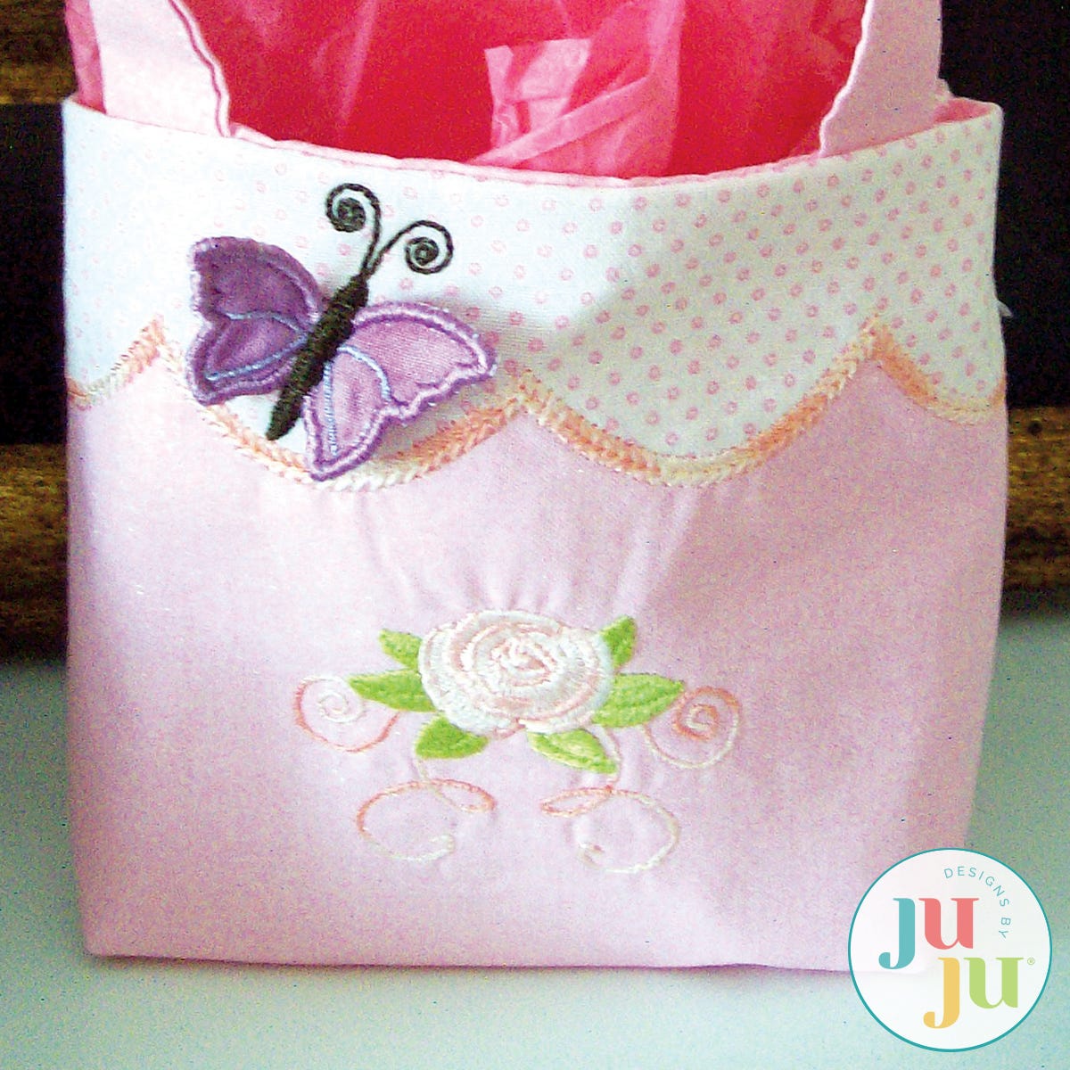 This little gift bag is mostly stitched as an in the hoop project; only the side and bottom seams need to be sewn on the sewing machine. The bags are fully lined and no raw seams are visible. The handles can be made from fabric (instructions included) or use ribbon instead. Fill it with a special gift for that special friend or sister. Also great for Mothers Day and weddings. Perfect for small wedding shower gifts. In all, there are three different versions provided for this bag: 6x10 with rose motif; 6x10 with rose and 3D winged butterfly motifs; 5x7 with rose motif. Detailed instructions with many photos are included in pdf format.