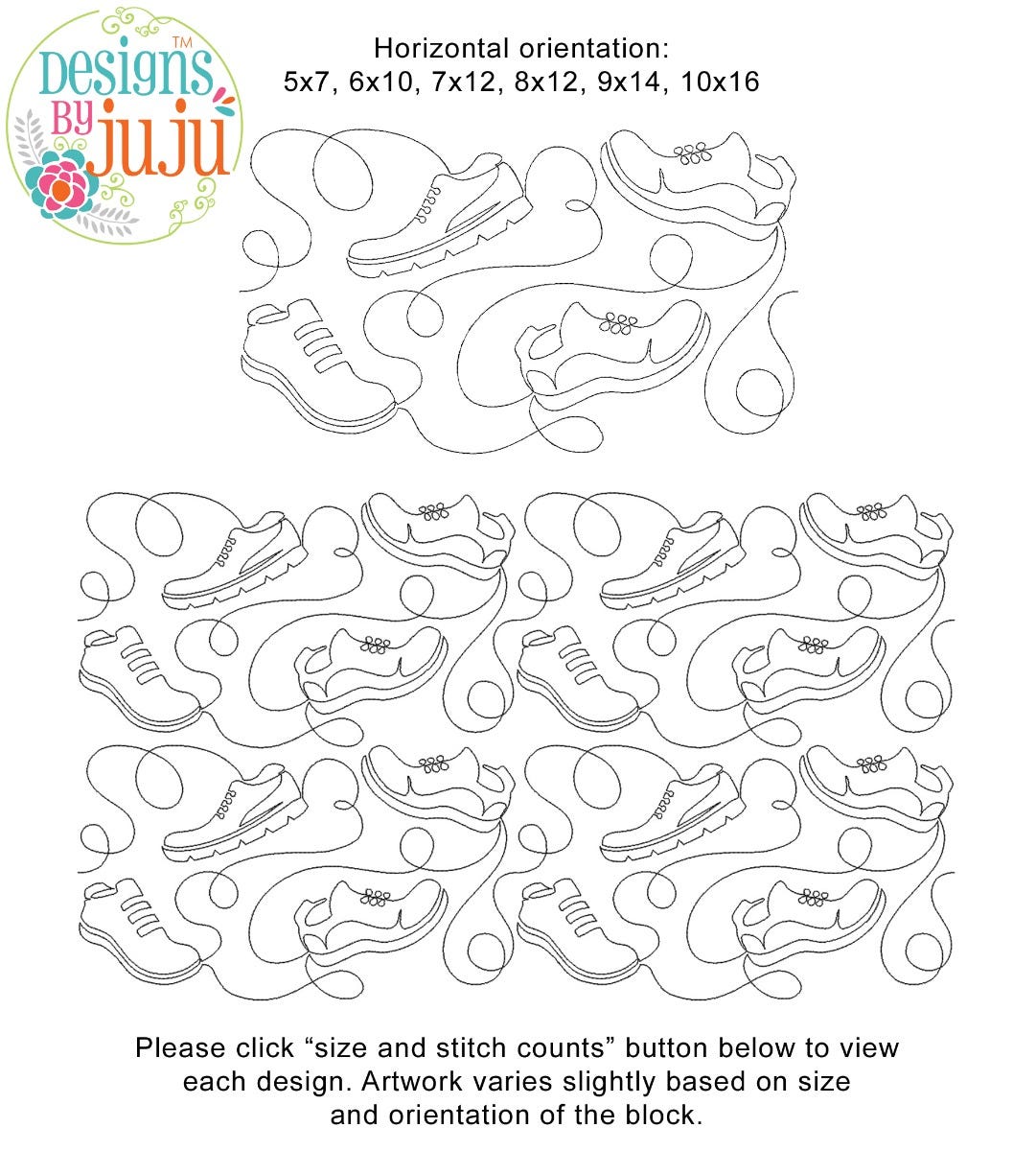 Includes continuous line single run End-to-End Quilting™ embroidery design as shown.
