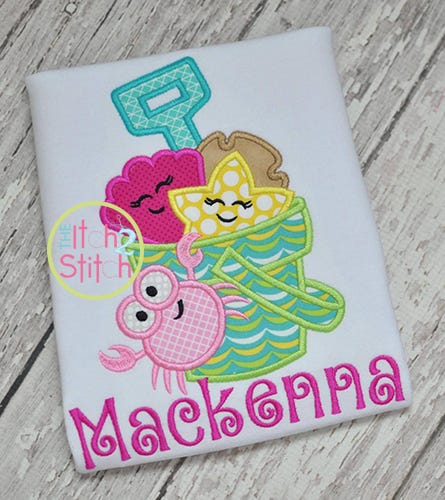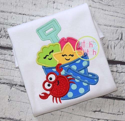 The girl version of the design includes faces on the shell and starfish. Also included in the zip is a version without faces on shell and starfish.Ā Two versions of this design are included in the zip. "Sand Pail Creatures Girl" includes faces on the shell and starfish, "Sand Pail Creatures" does not.