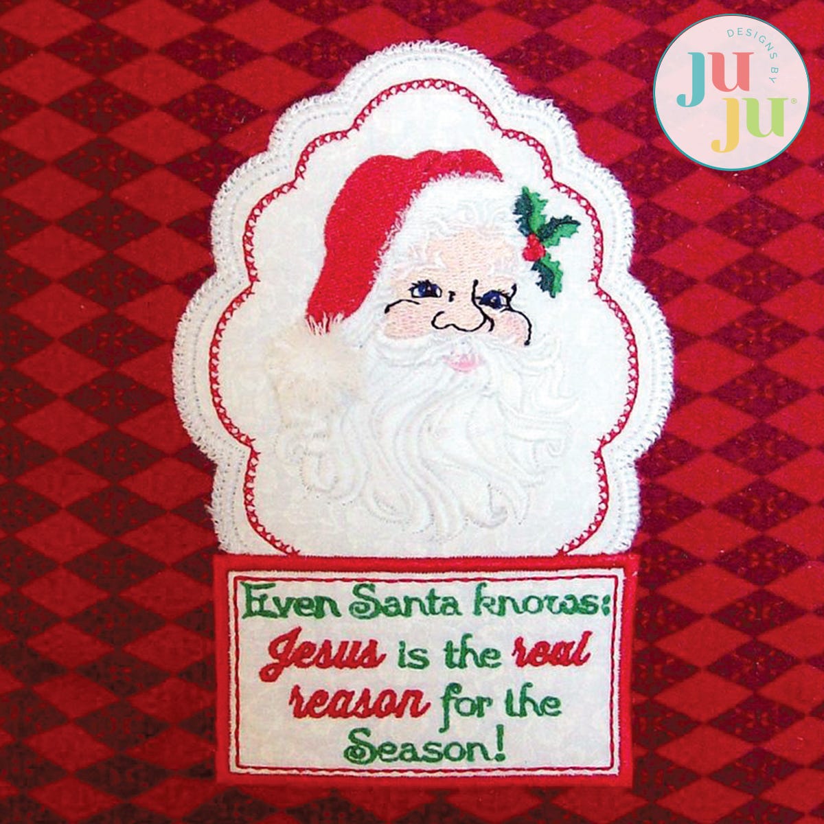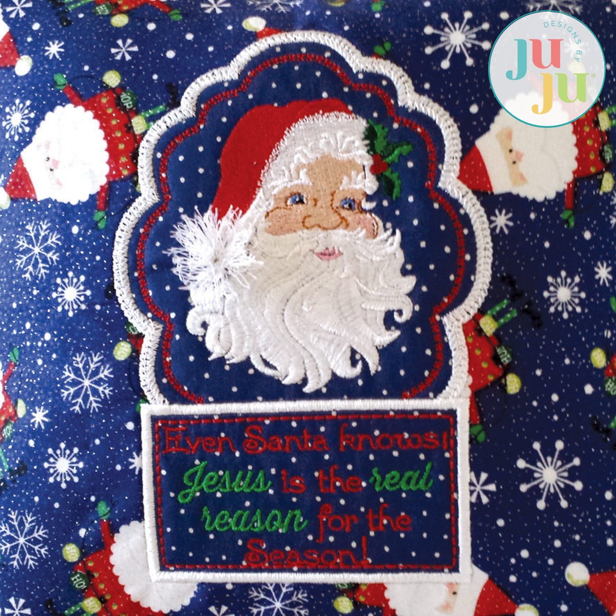 This beautiful pillow combines the true message of Christmas with the popular Santa image. The center and label of the pillow are reverse appliqued. If you have not done this before, don't worry. It's easy and we will show you how. The entire front is constructed in one hooping. The back has a Velcro closure which gets stitched in the hoop. A small amount of machine stitching is required to attach the back to the front. Detailed instructions with photos in pdf format are part of your download.
