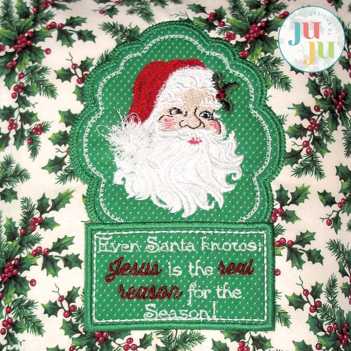 You are also receiving the pillow front without the label. In addition, your download includes the Santa design by itself. You are receiving a total of 4 stitch files.