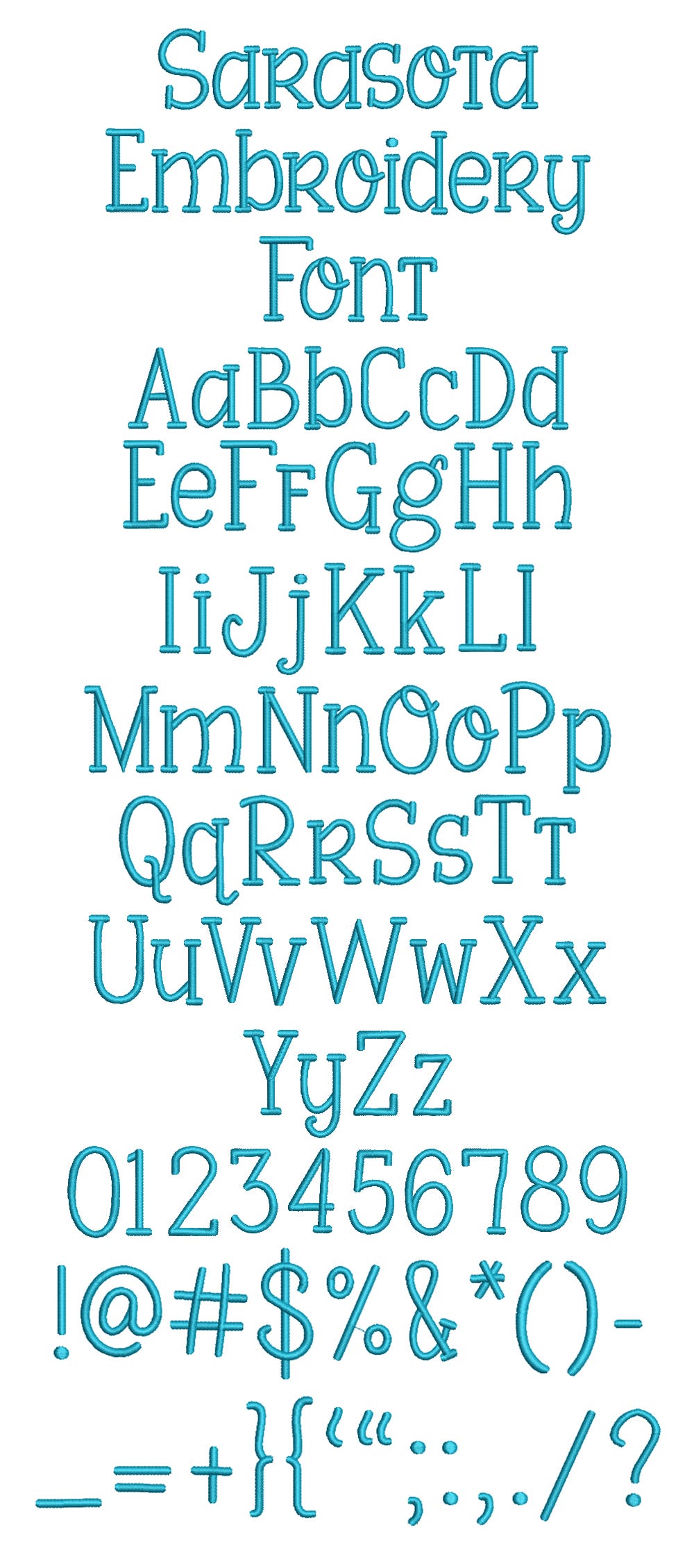 All of our font alphabets are 100% manually digitized to bring you maximum stitch quality.