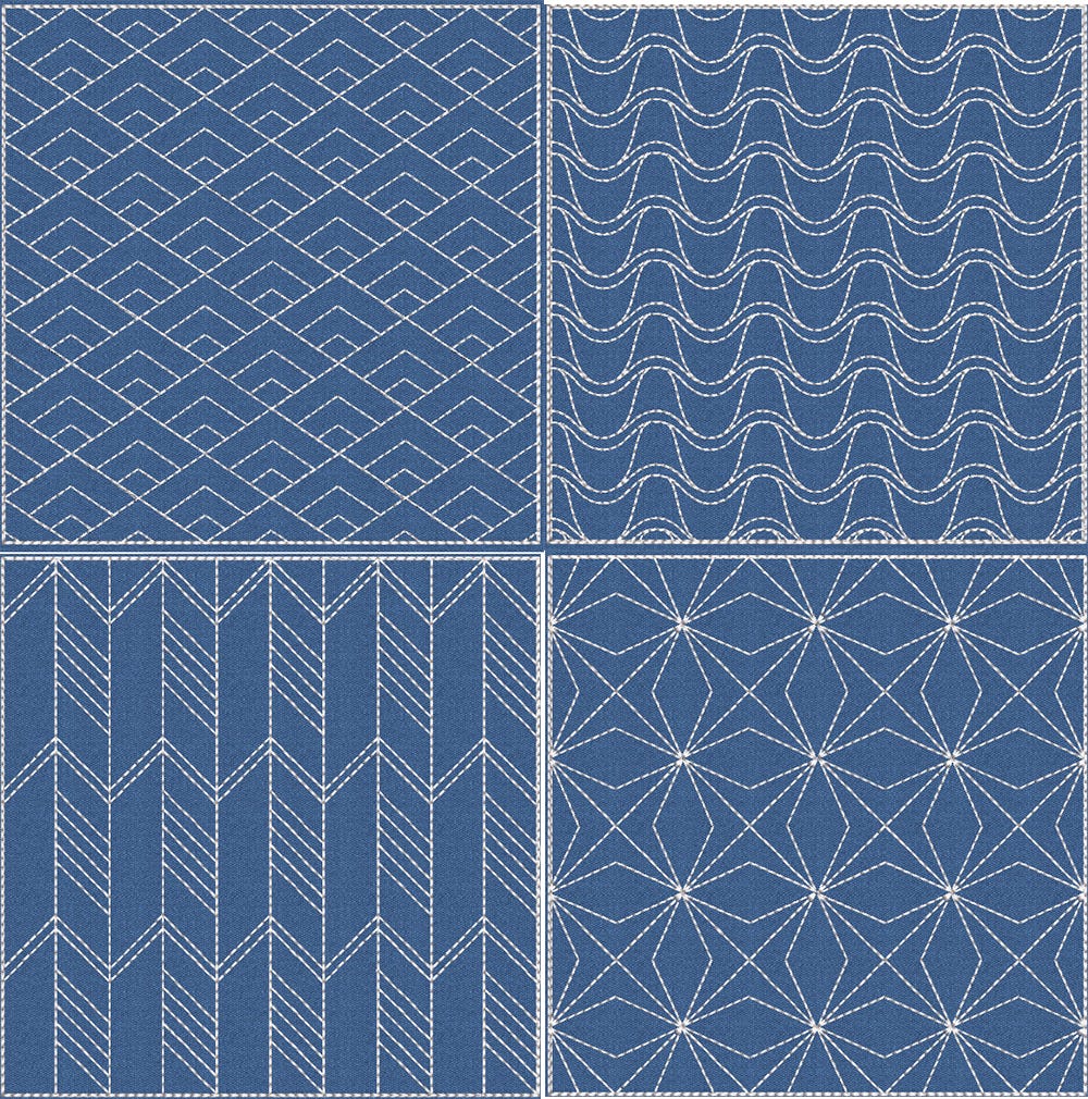 4 gorgeous Japanese sashiko style inspired quilt blocks in 6 sizes each: 4Ā inch, 5Ā inch, 6Ā inch, 7Ā inch, 8Ā inchĀ andĀ 9 inch