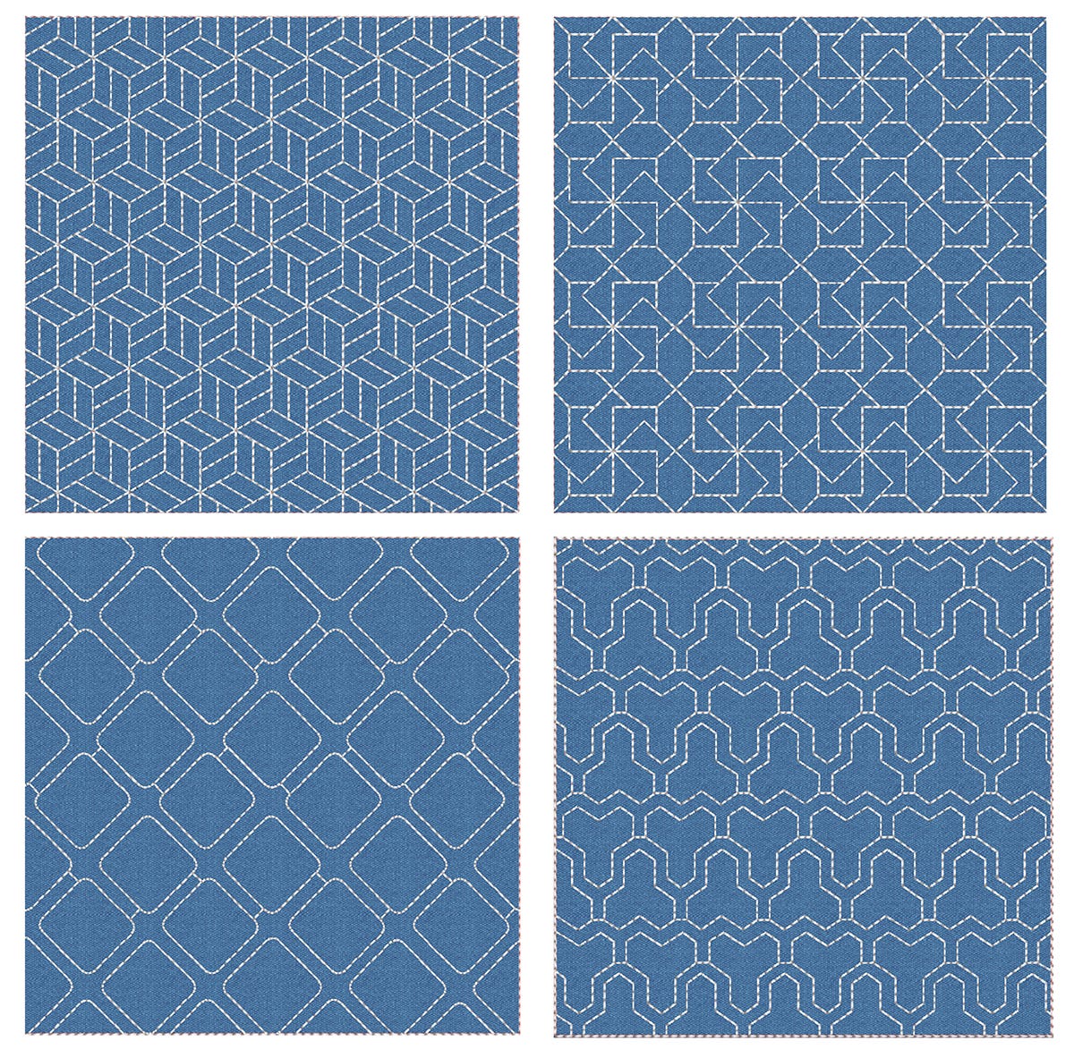 4 gorgeous Japanese sashiko style inspired quilt blocks in 6 sizes each: 4Ā inch, 5Ā inch, 6Ā inch, 7Ā inch, 8Ā inchĀ andĀ 9 inch