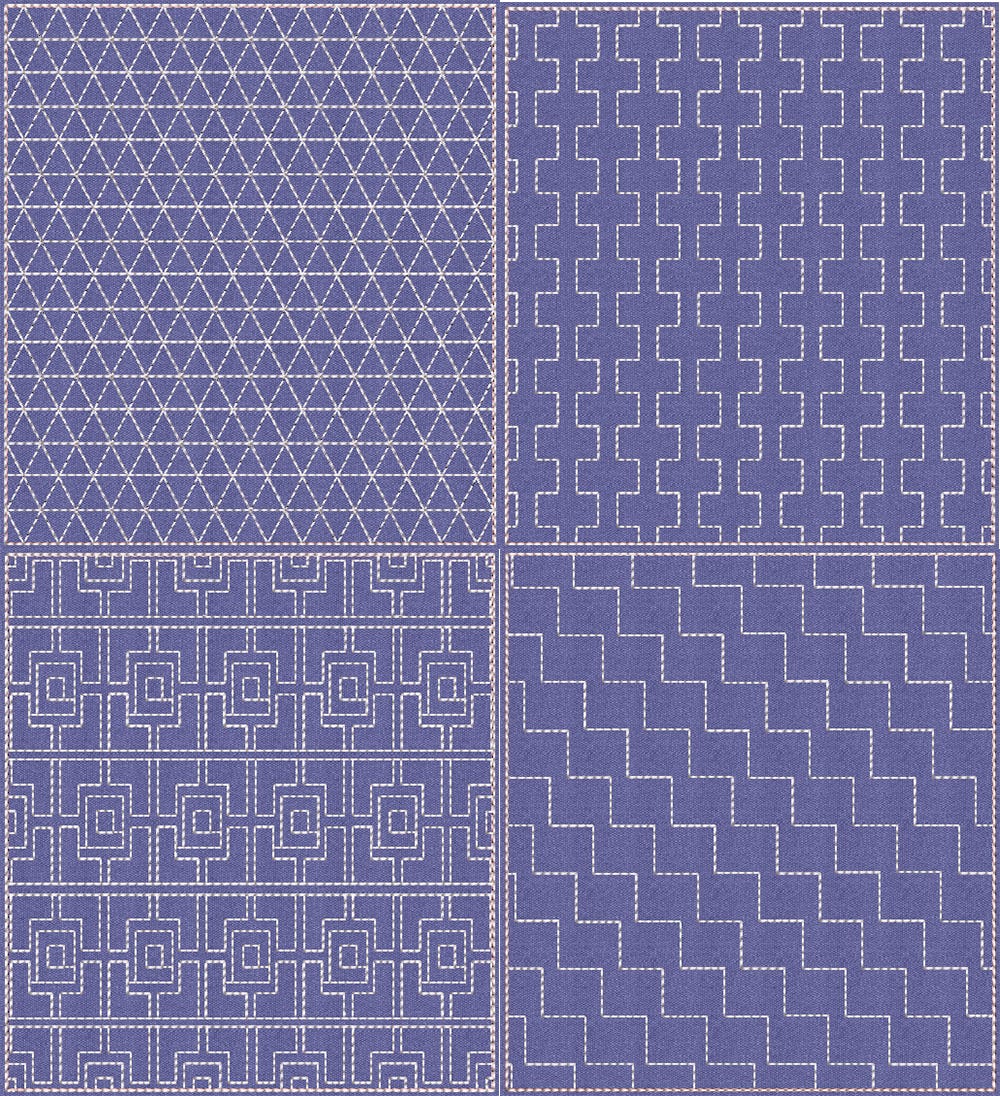 Sashiko is a Japanese style of stitching traditionally used to reinforce points of wear or to repair worn places or tears with patches, and traditionally use geometric patterns. Today, this running stitchĀ technique is often used for purely decorative purposes in quilting and embroidery.Ā These quilt blocks areĀ inspiredĀ by this style and we have digitized geometric patterns designed by our artist and include them in both a single running stitch and triple stitch option. Triple stitch blocks will have a higher stitchĀ countĀ but are more "defined" stitches that give a heavier stitch appearance.