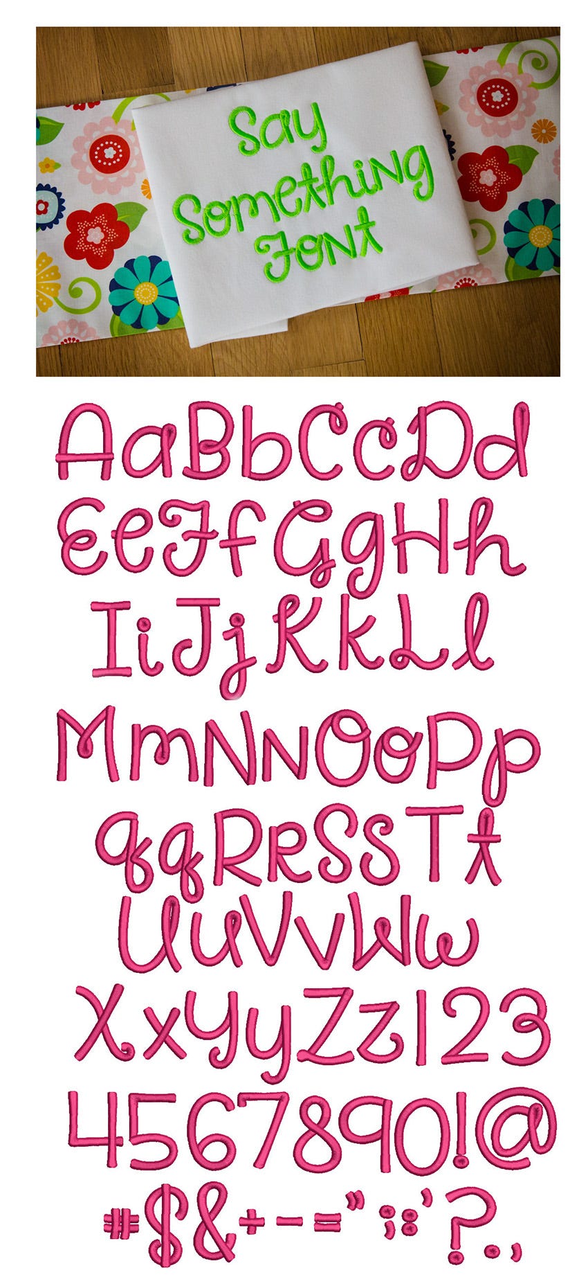 Cute and whimsical! All of our font alphabets are 100% manually digitized to bring you maximum stitch quality.