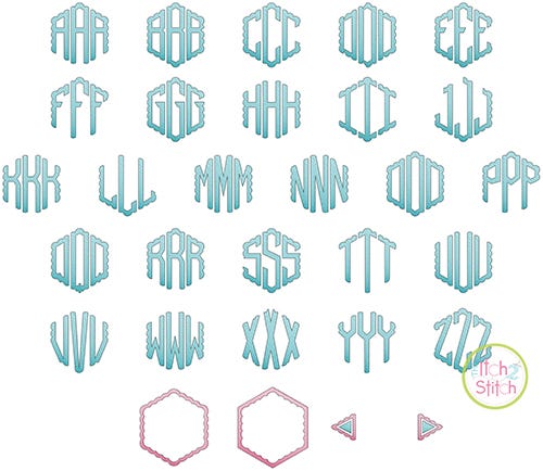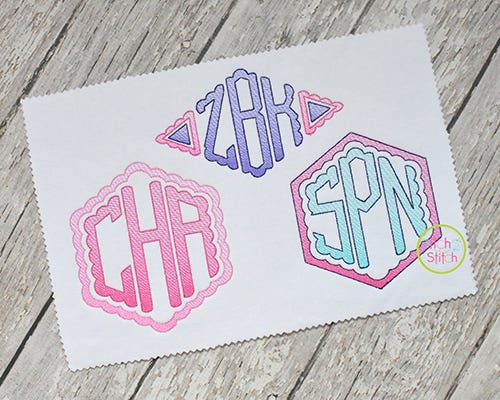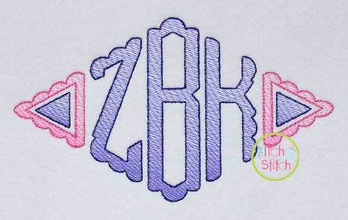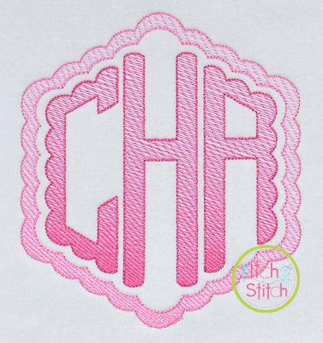 Please note this is not applique, nor is it a traditional satin or fill stitch font. The light and airy "sketch" fill pattern allows for a quick stitch out. The space between each line of stitching varies such that it is more dense at the bottom than the top of each letter to create the shading effect. The letter is finished off with a triple bean stitch outline. We do not recommend resizing this font in software.