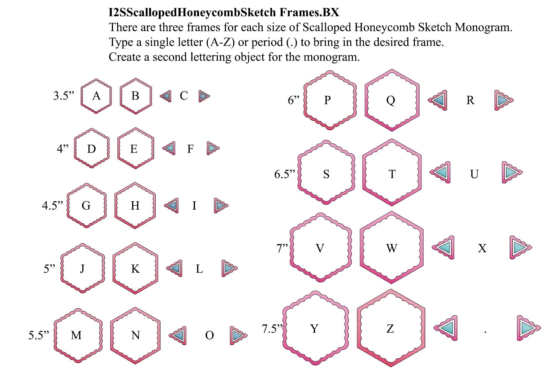 You will receive all Left, Center, and Right A-Z letters, three different frame styles, and a template for letter placement (82 total files) in nine sizes.