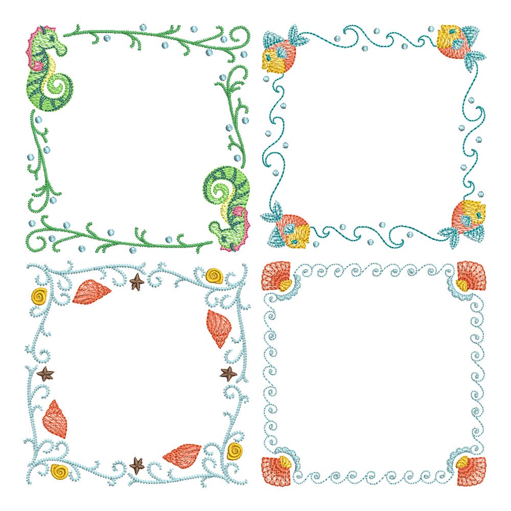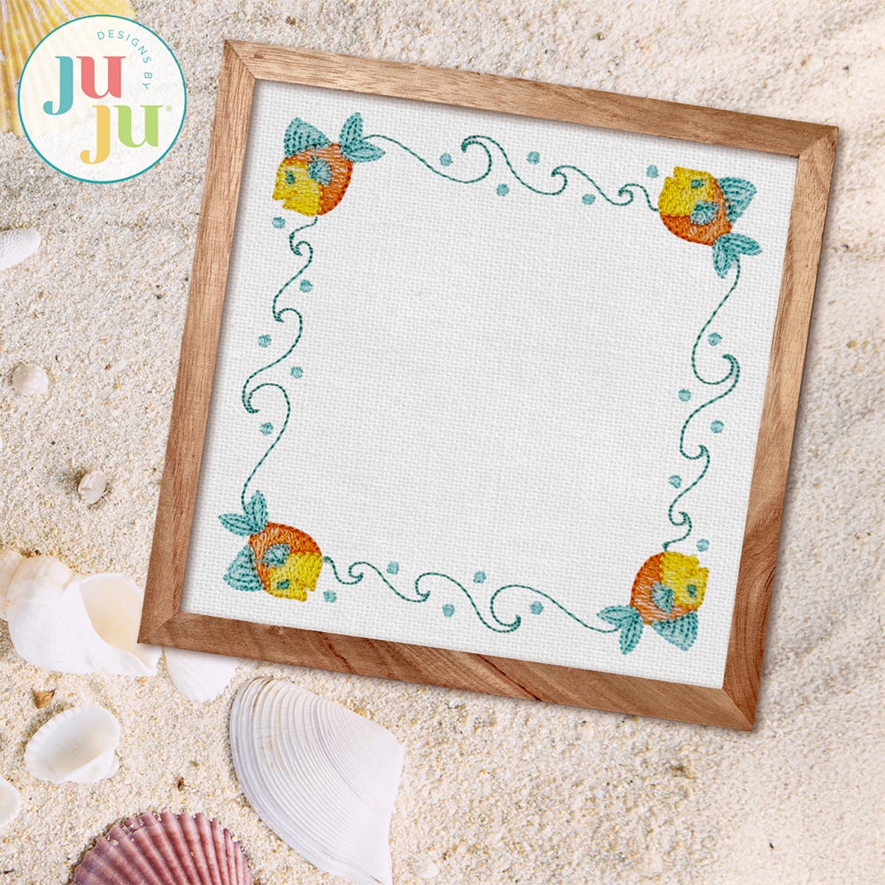 Make waves with our Sea Life 2 embroidery design set! This playful collection features four beach-themed frames featuring fish, starfish, seahorses, shells, and more. Perfect for adding a splash of ocean-inspired charm to your projects!
