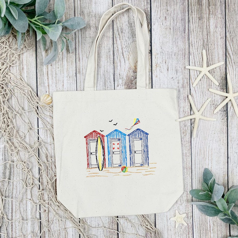 Change into your suit and hit the beach! These seaside huts are perfect for vintage summer projects. This single is a bean stitch design for a hand-stitched look.