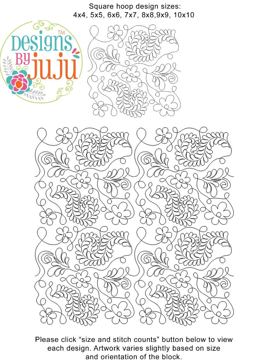 Please note: Both the scale of each pattern and arrangement of the motifs may vary based on the hoop size. Please click the "Size and Stitch Count" button to view the artwork for each size.