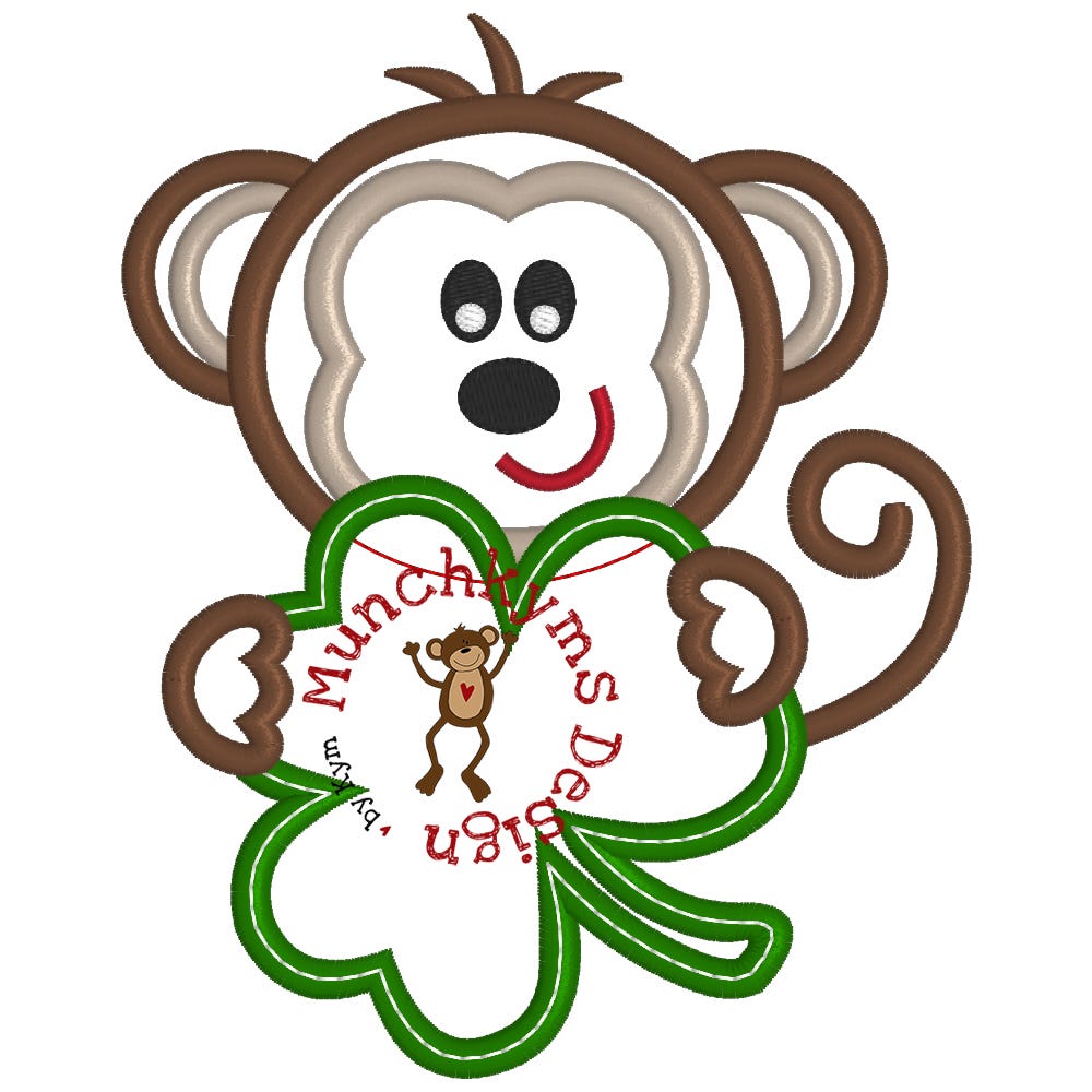This three fabric applique features a bean stitch accent line on top of the satin stitches around the shamrock.