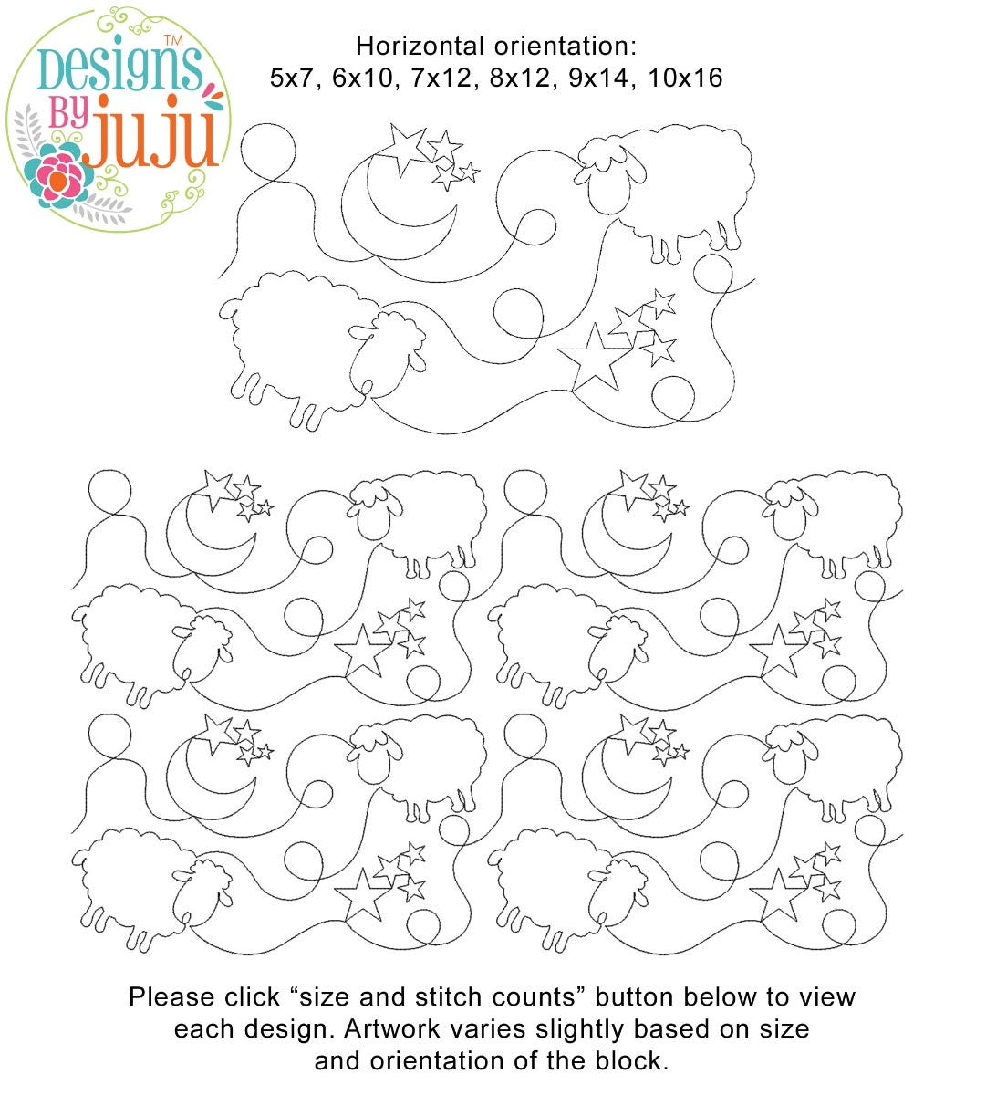 **Please view each block by clicking "size and stitch counts" underneath the image on this page as artwork varies slightly by block size and orientation.